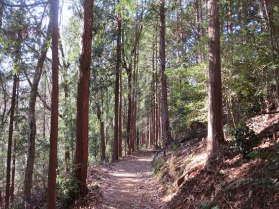 左右の木々は枝打ちがされて地面まで冬の陽が落ちていた
