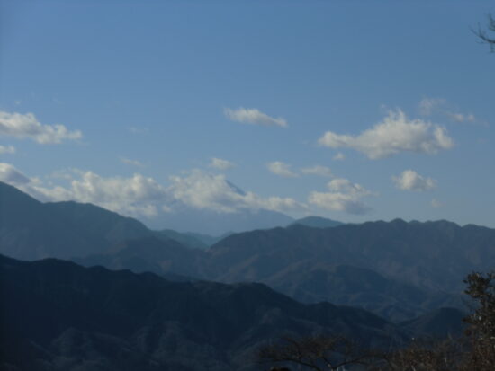2025年元旦 高尾山山頂より雲に隠れた富士山!山頂は大勢の登山者で賑わっていました。