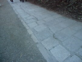 もうすぐ下山。かつて都電のレール敷き石だそうです。