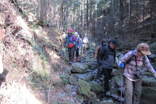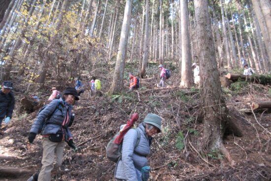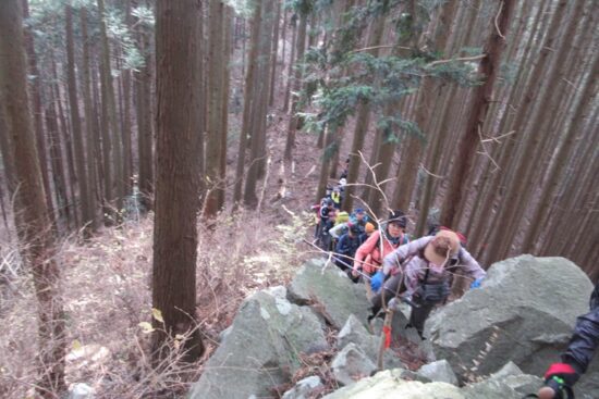 下に落ち葉がたくさんあり、滑りやすい急登のコースでしたが、全員無事に歩くことができました