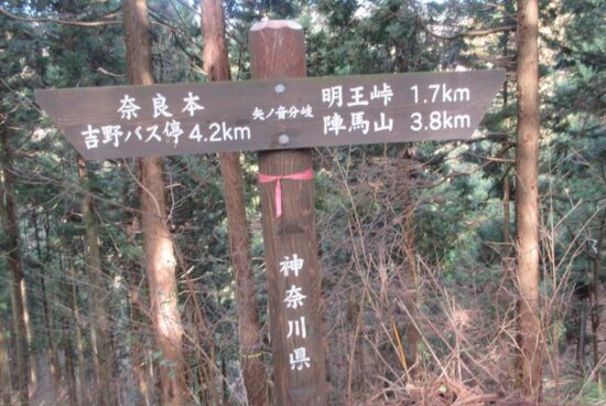 → 矢ノ音(昼食)11:30-12:00 → 太平小屋 12:40 → 与瀬神社 鳥居 解散 13:35 → 相模湖駅 13:45
