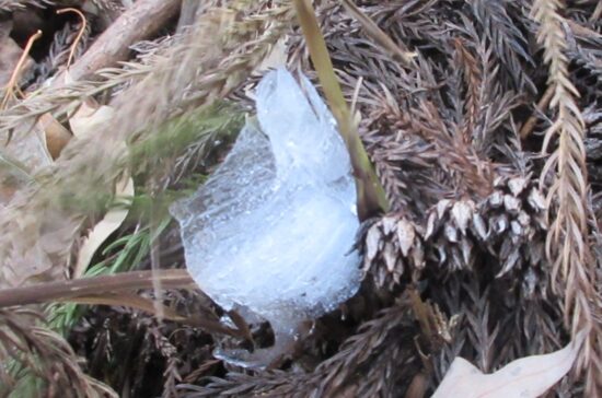 下見に行ったときにシモバシラの花が咲いていたので、少し期待して矢ノ音の北斜面を歩いたのですが