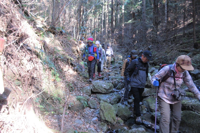 コース:相模湖駅 9:00集合 歩行開始 9:05 → 取付点 9:45 → 寺山 10:25 → テシロ 11:00