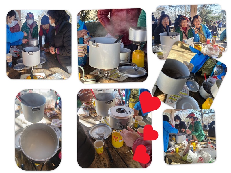 まずはお汁粉だよ。先発隊が温かい餅入り