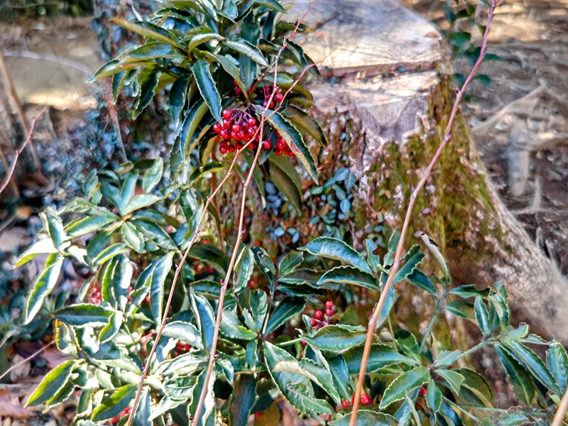 マンリョウの赤い実が綺麗。花言葉は「寿ぎ」