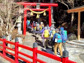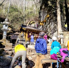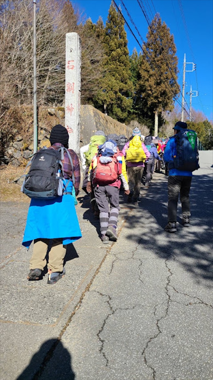 石割山ハイキングコース入口(石割神社前社)にて、コース説明、参加リーダー、協力者の紹介などをさせていただきました。
