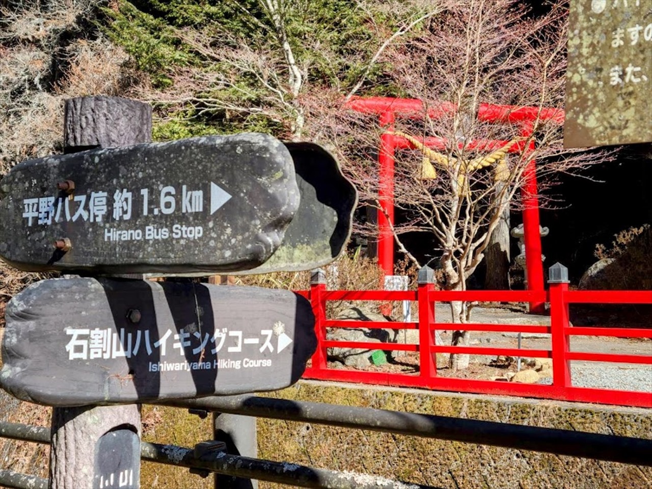 石割山ハイキングコースの案内と石割神社の説明が記されていました。