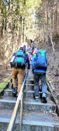 大平山に向かう最後の階段。この階段を登りきると、急に視界が開き、眼の前に大きな富士山が現れます。
