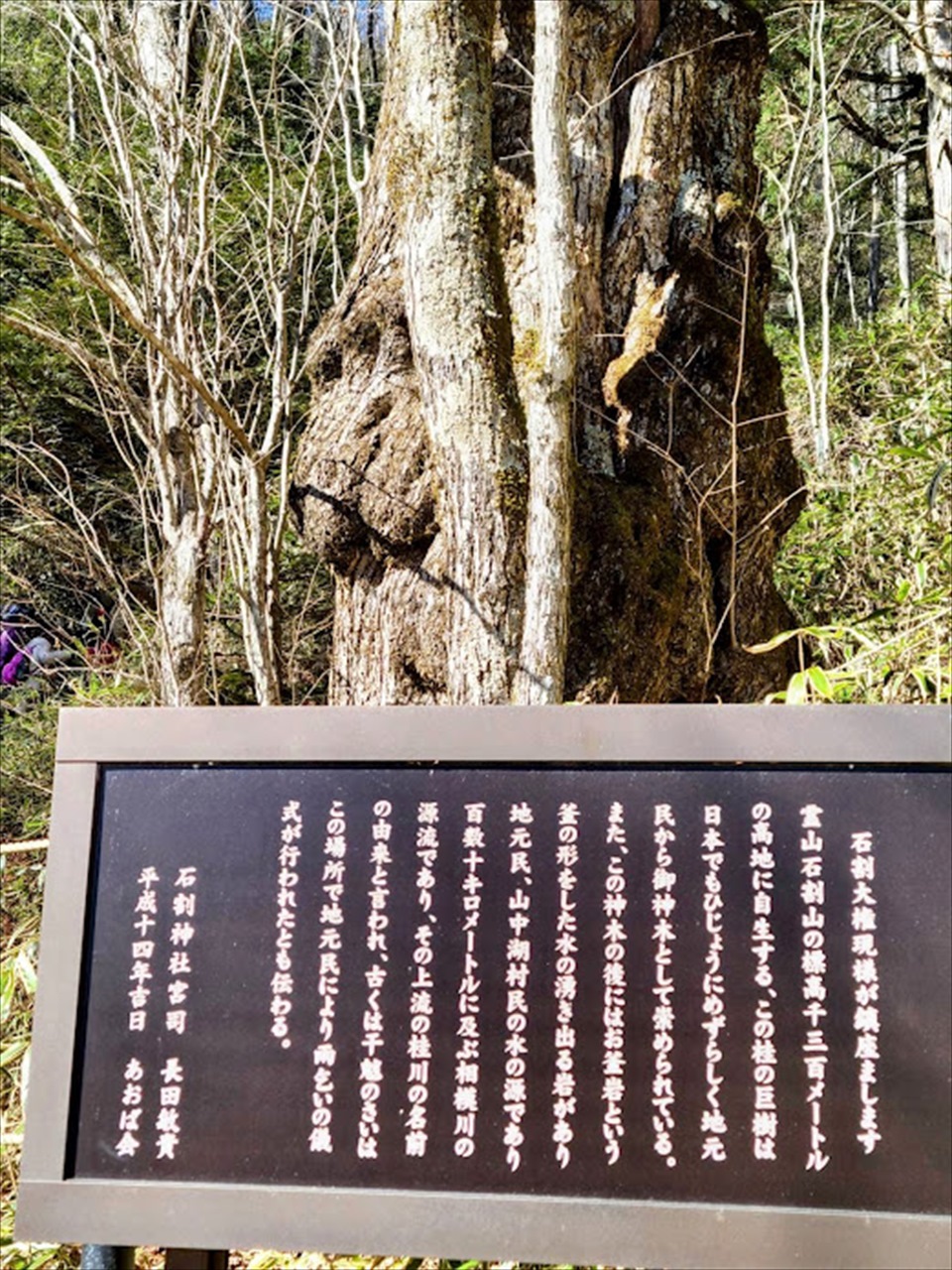 石割大権現 桂の巨樹 この巨樹の後ろには、お釜の形をした水の湧き出る岩があります。