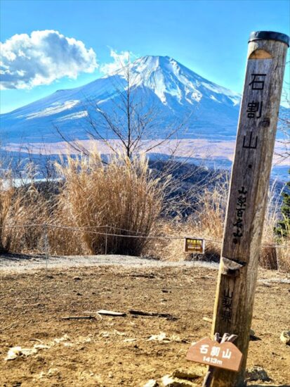 石割神社から25分程登ると、急に視界が開けて石割山に到着です。小春日和を思わせるような中、健康でいられて素晴らしい景色を観ながら歩くことができる、そのような一瞬一瞬があることに感謝です。