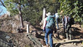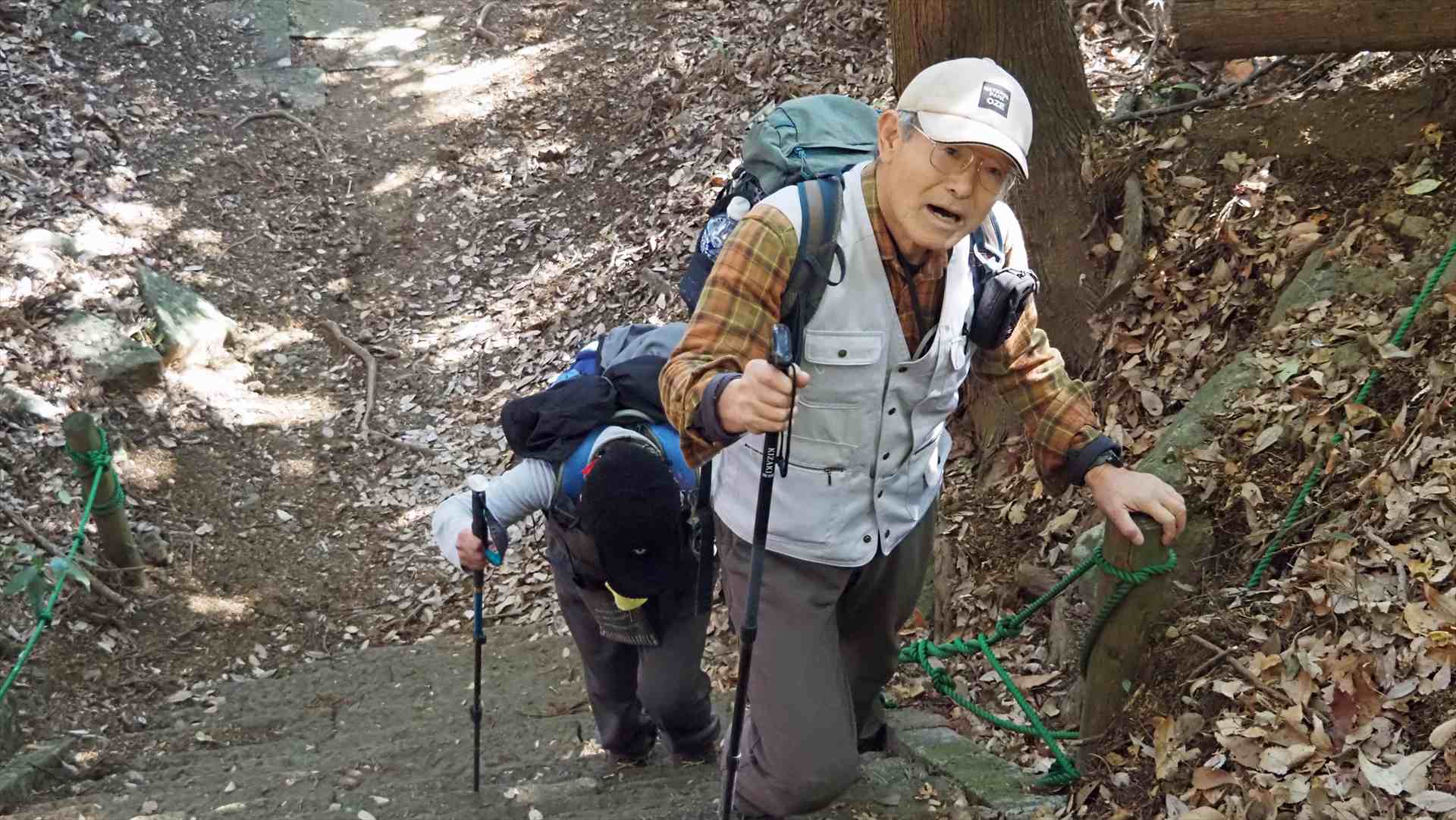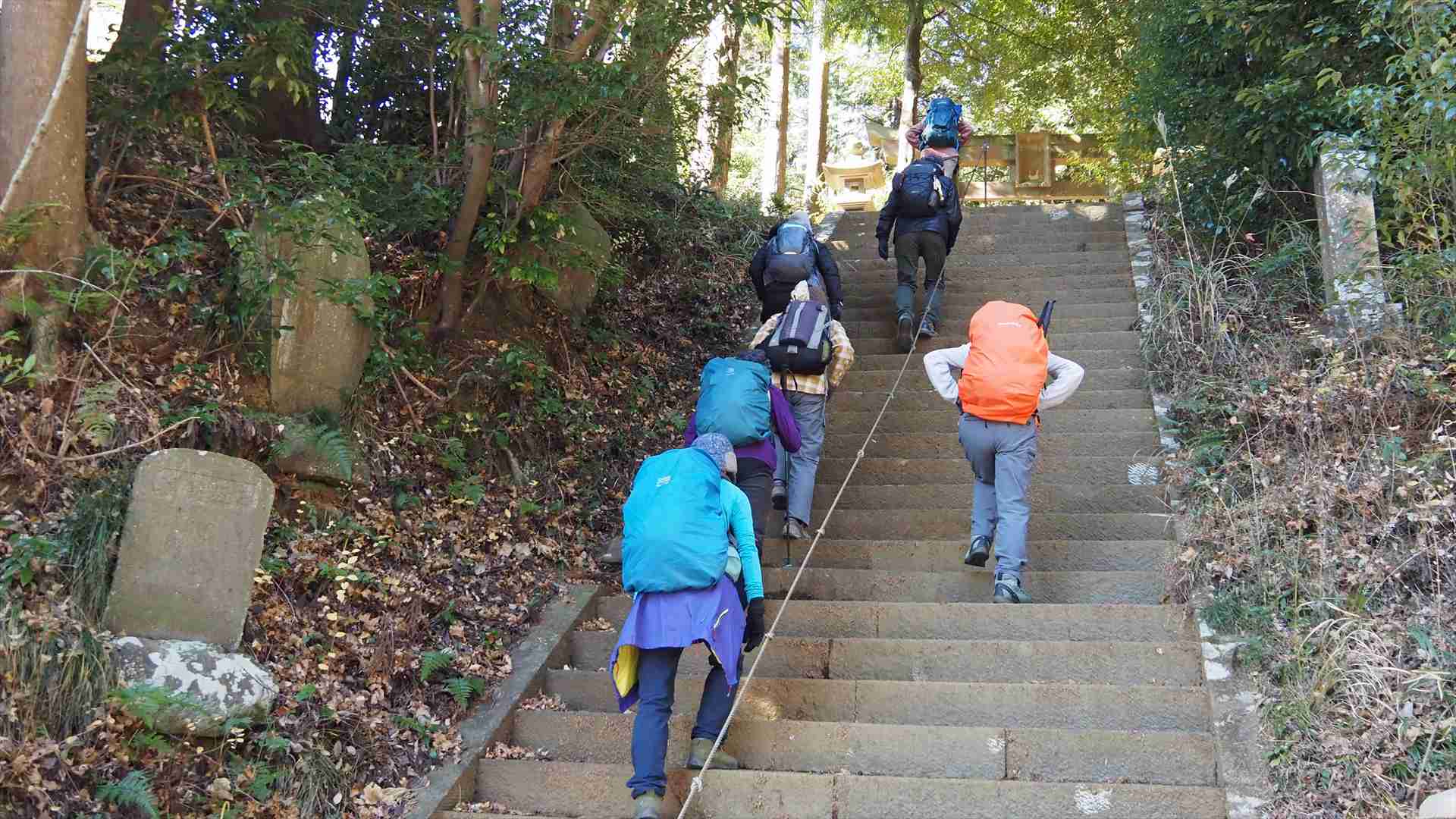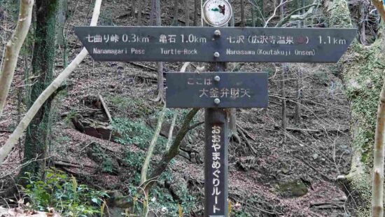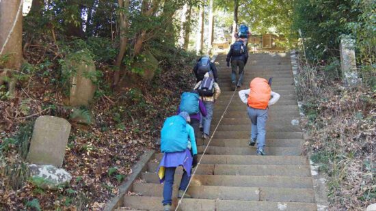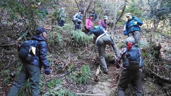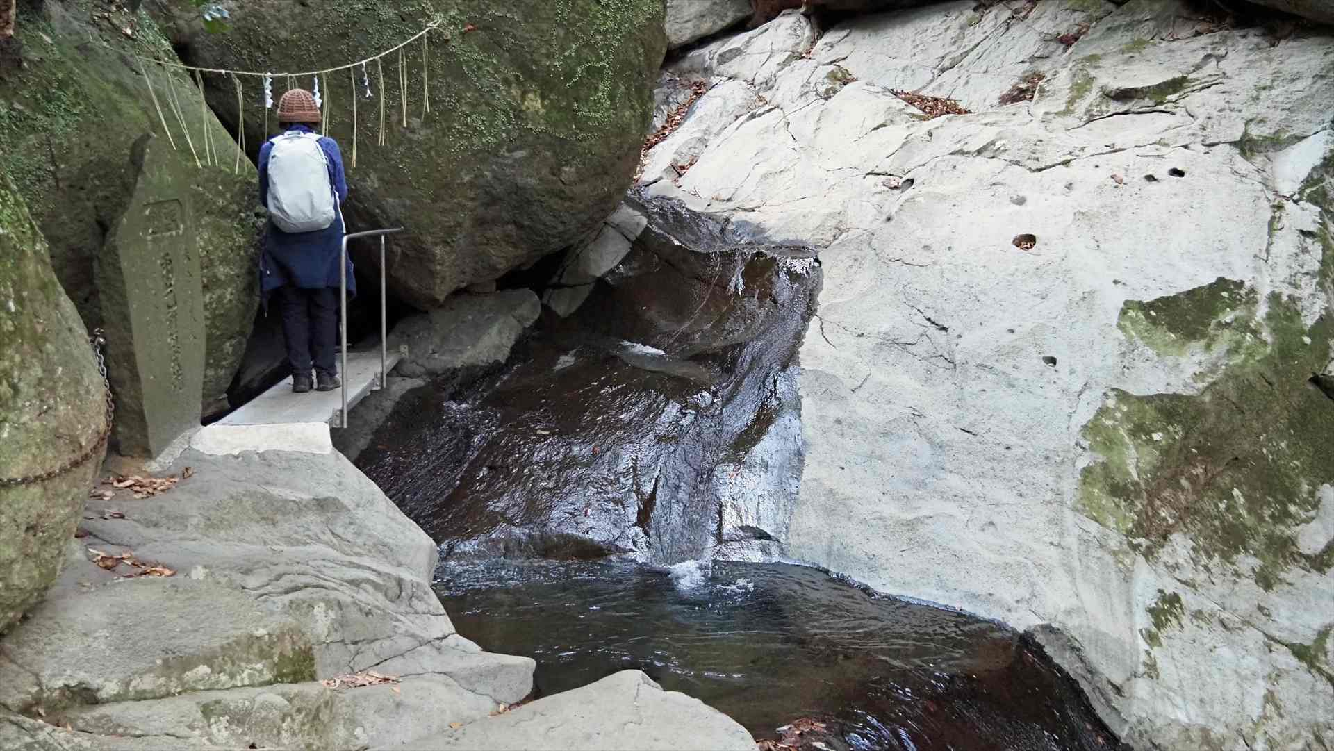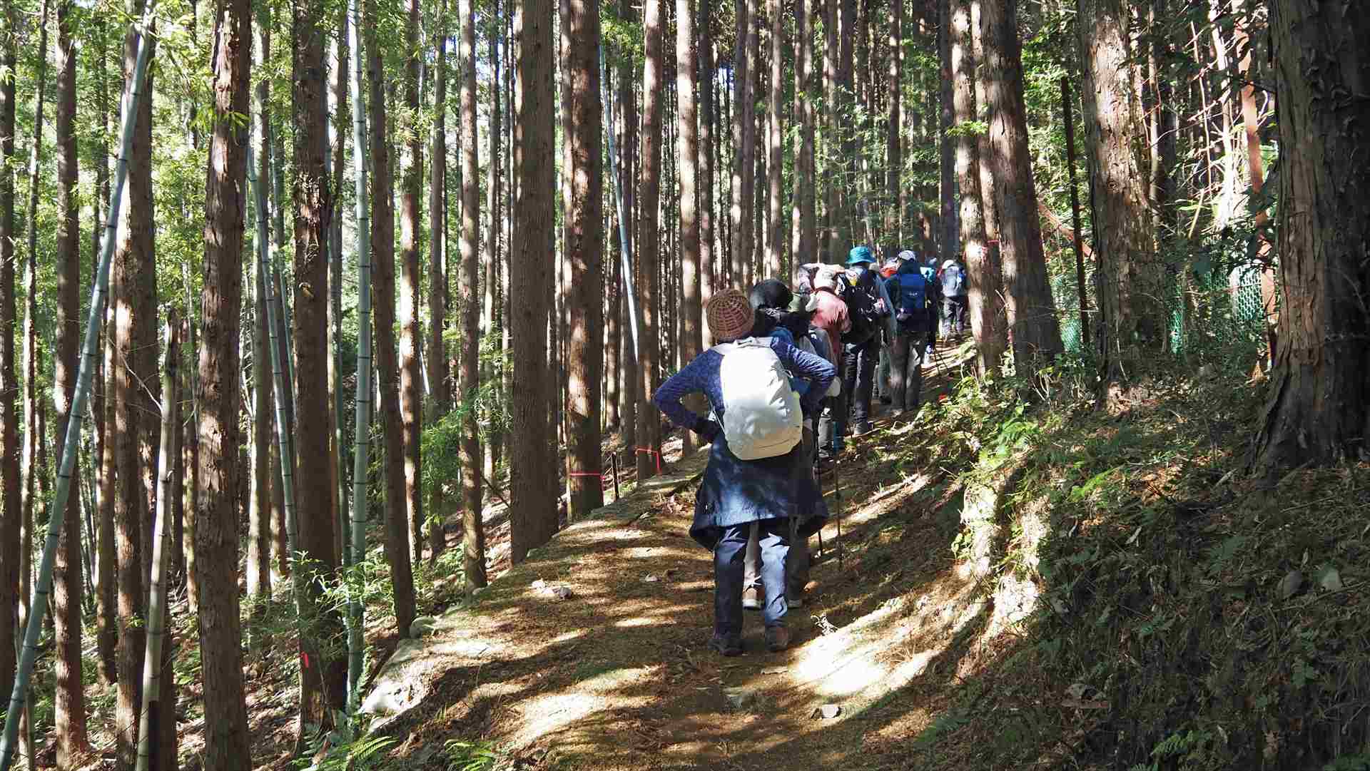 小田急線本厚木駅バスセンター=広沢寺温泉入口バス停10:22→鐘ヶ嶽登山口10:39→浅間神社12:00→鐘ヶ嶽12:04→12:10鐘ヶ嶽下広場(昼食)12:45→山ノ神峠13:15→弁天岩14:05→七曲峠14:16→日向山14:45→日向薬師15:22(解散)→日向薬師バス停=小田急伊勢原駅