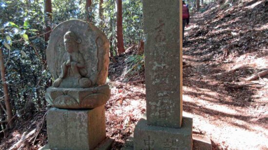 鐘ヶ嶽の登り口から、山頂手前の浅間神社まで、28の道程に分けてそれぞれの個所に1丁目から28丁目までの石碑が置かれています。28という数は、鐘ヶ嶽山頂(標高561メートル)までの道のりが長いことを表していることと、「八」という字体が末広がりで縁起がよいことに関係しています。