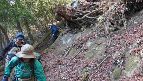 山の神峠からヤセ尾根 一部 岩場やクサリ場になり慎重に安全に降る。