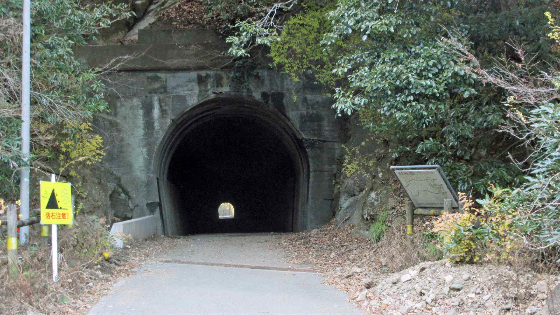 全長230m、今はコンクリートで補強されているが、かっては素掘りでした。トンネルの北側を大山方面に進むと不動尻のミツマタの群生地です。