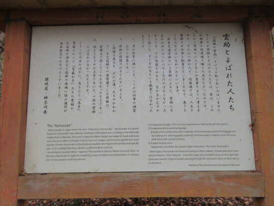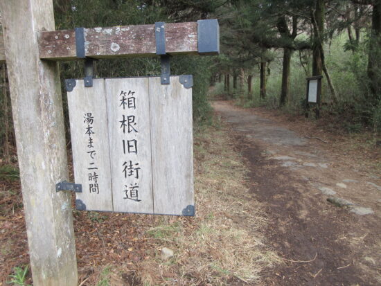 箱根旧街道の看板 旧東海道とそれまでの湯坂道が交差していた場所。