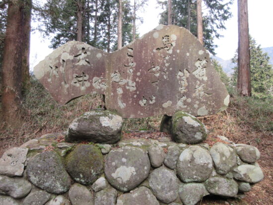 箱根馬子唄の碑 馬の形の石には、「箱根八里は馬でも越すが・・・大井川」と刻まれている。
