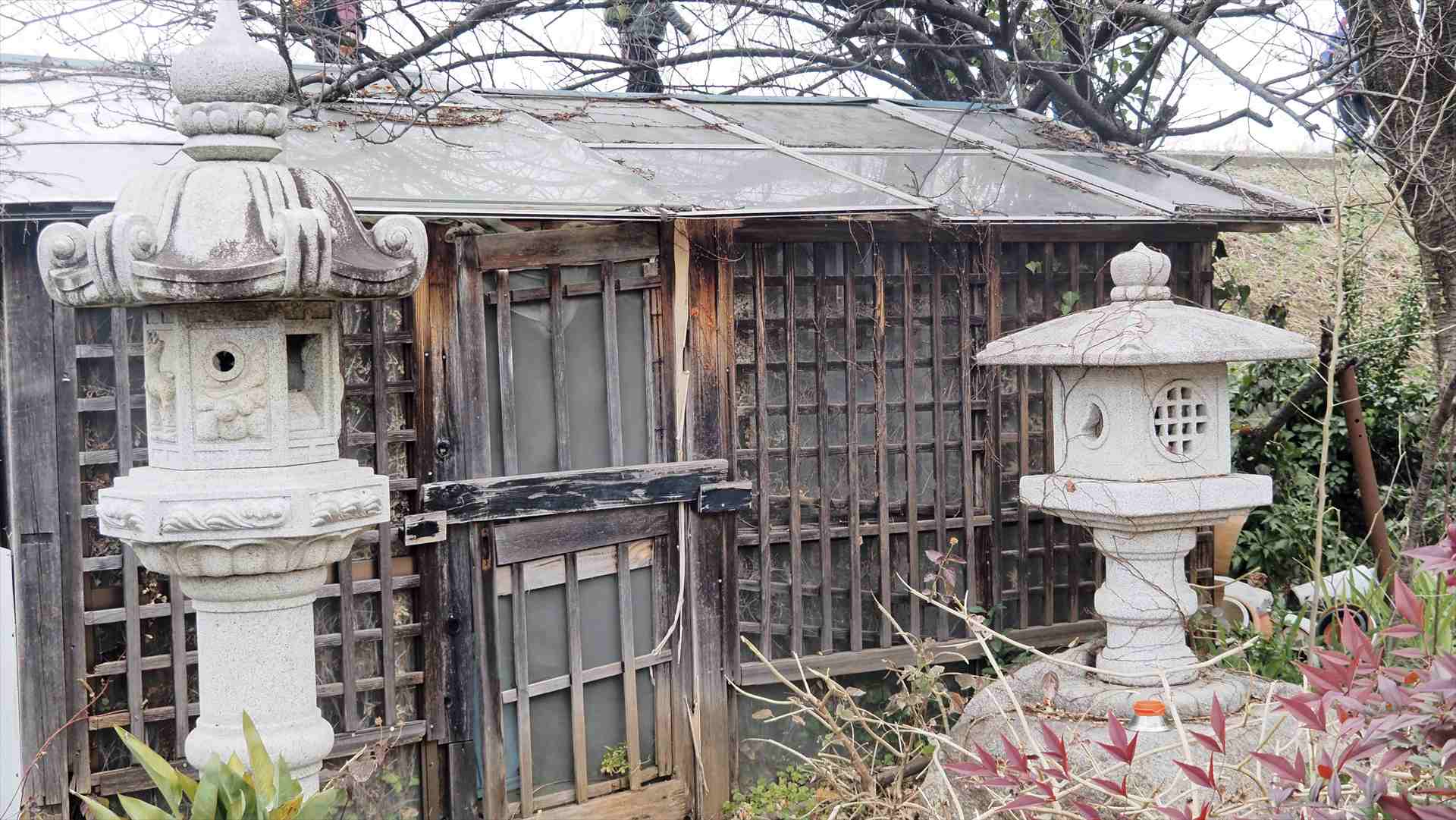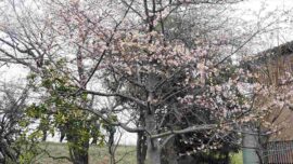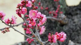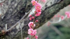 東屋の木は、枝垂れ梅です。上記にリンクにすると違いが判ります。