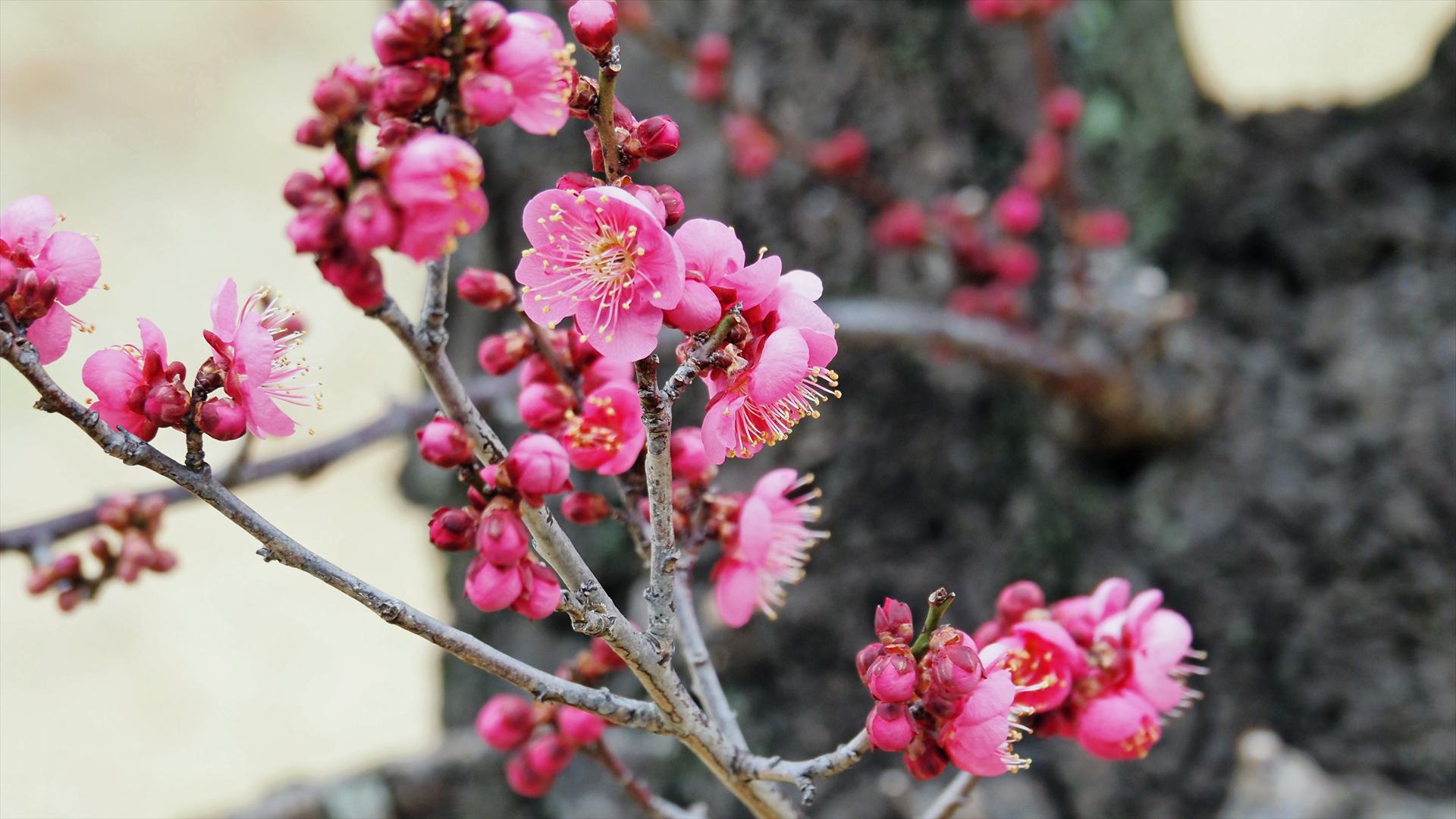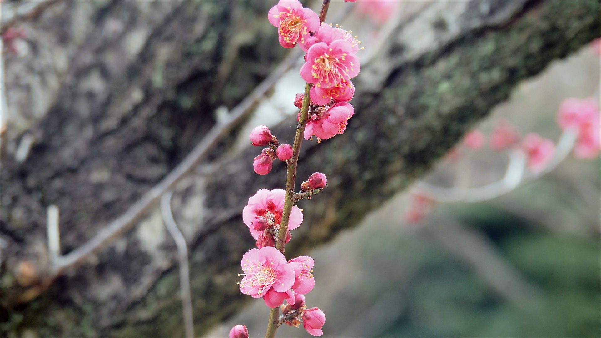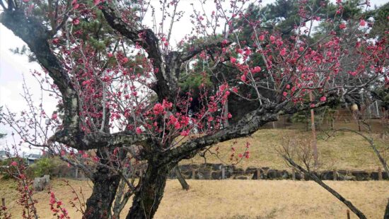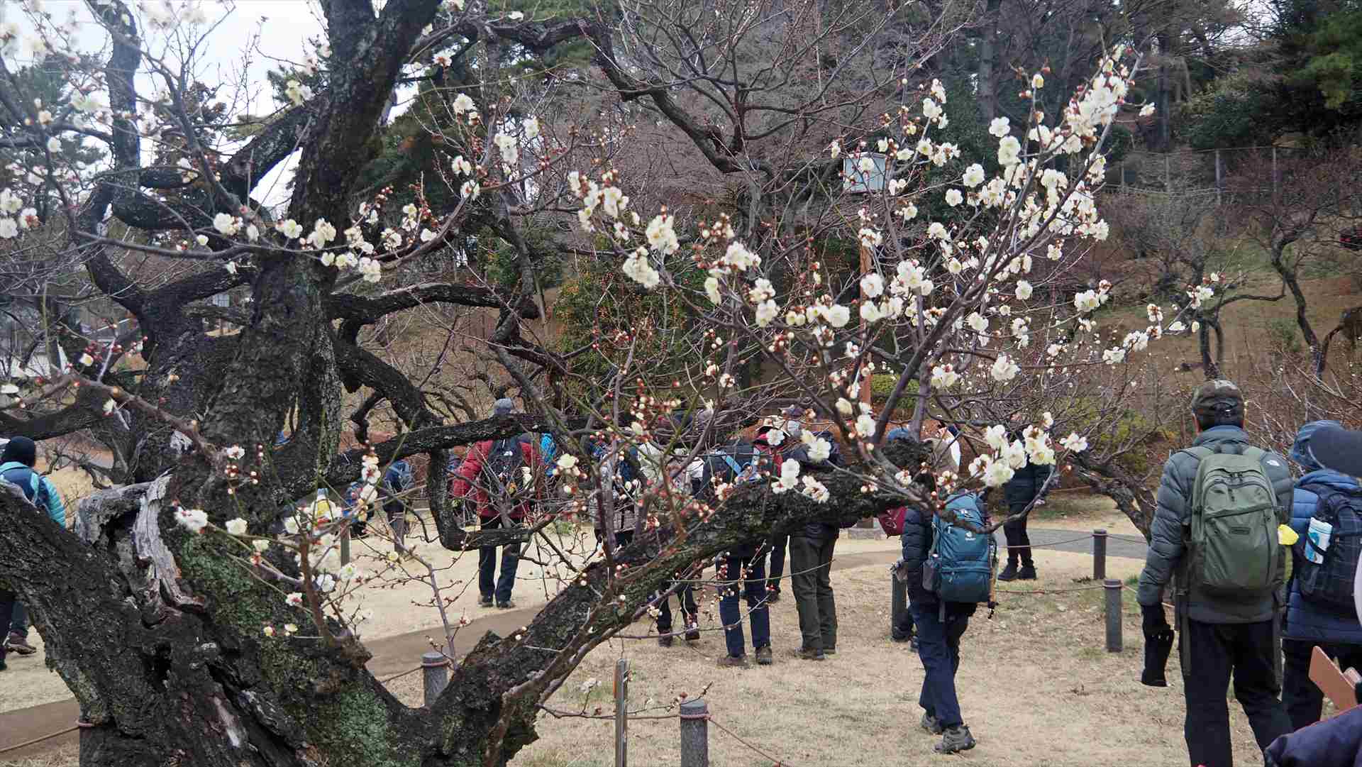 大倉山梅林では紅、白梅が数本咲いているだけで観梅者は少なく閑散として貸し切り状態。
