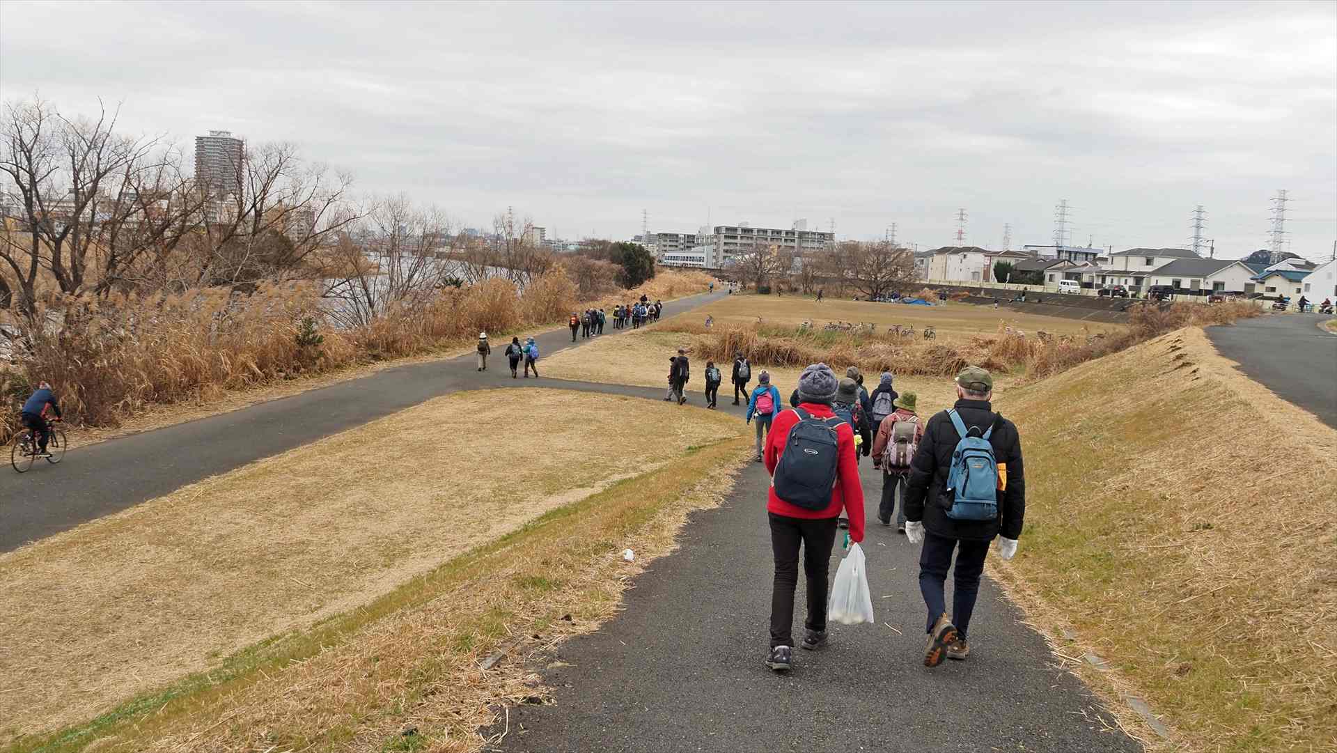 太尾見晴らしの丘で昼食、鶴見川の土手を歩き綱島までへ。大勢の参加有り難うございました。中嶋要一