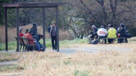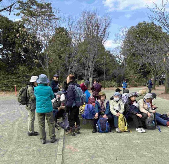 しばらく坂を登り、広場でリーダー挨拶(コース、参加リーダー協力者紹介等)