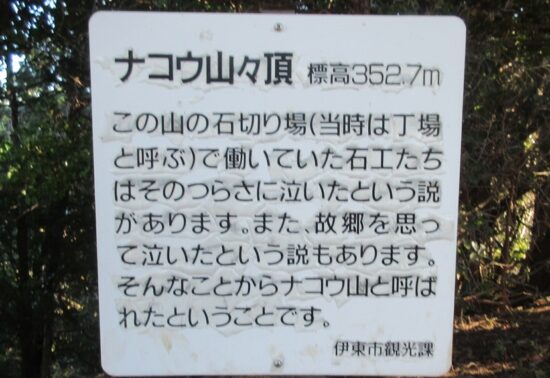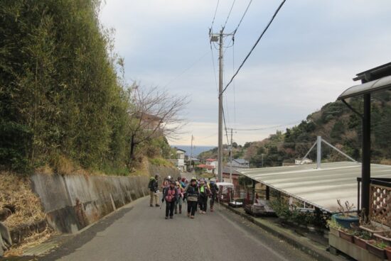 コース:宿 8:30 → 海岸 8:40 → 登山口 9:20 → 分岐 10:20 → ナコウ山 10:40 → 分岐昼食 11:05-11:30 → 網代峠 11:50 → 網代駅 解散 12:35
