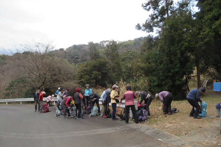 日帰りのみで参加の人も加えて、リーダーの挨拶、コース説明、水分・カロリー補給の注意のあとスタート