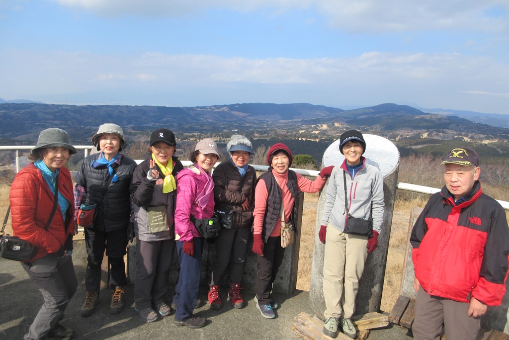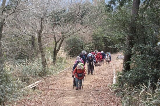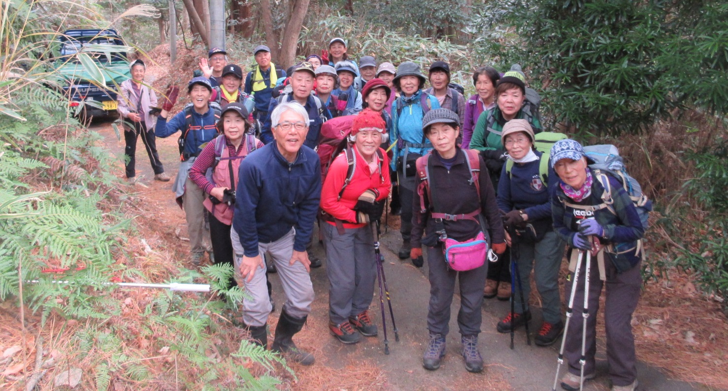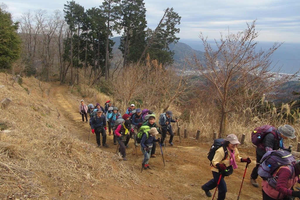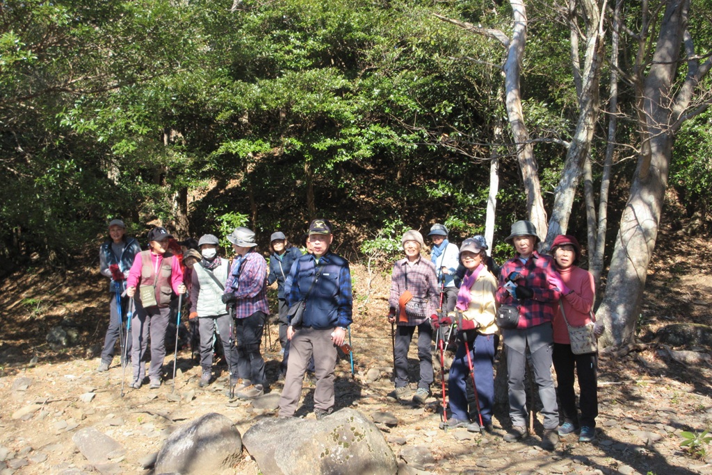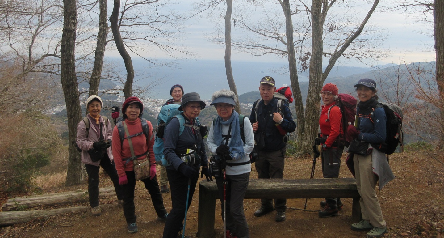 コース:宇佐美駅 9:30集合 9:35歩行開始 → 大丸山登山口 10:40 → 大丸山広場 昼食11:25-11:55 → 大丸山 12:05 → 巣雲山 12:50 → 登山口 14:20 → 民宿 ふかべ 15:35