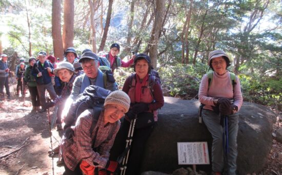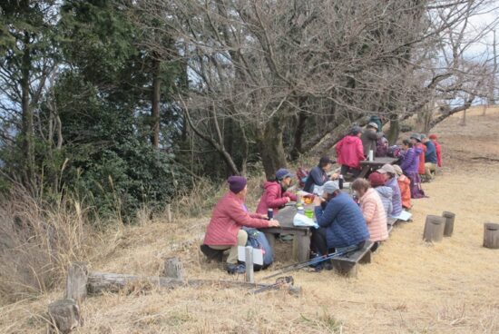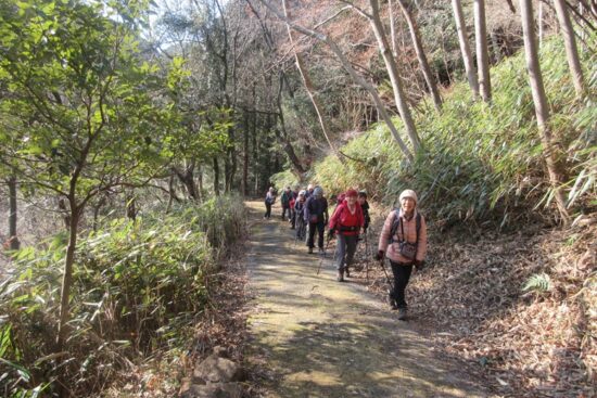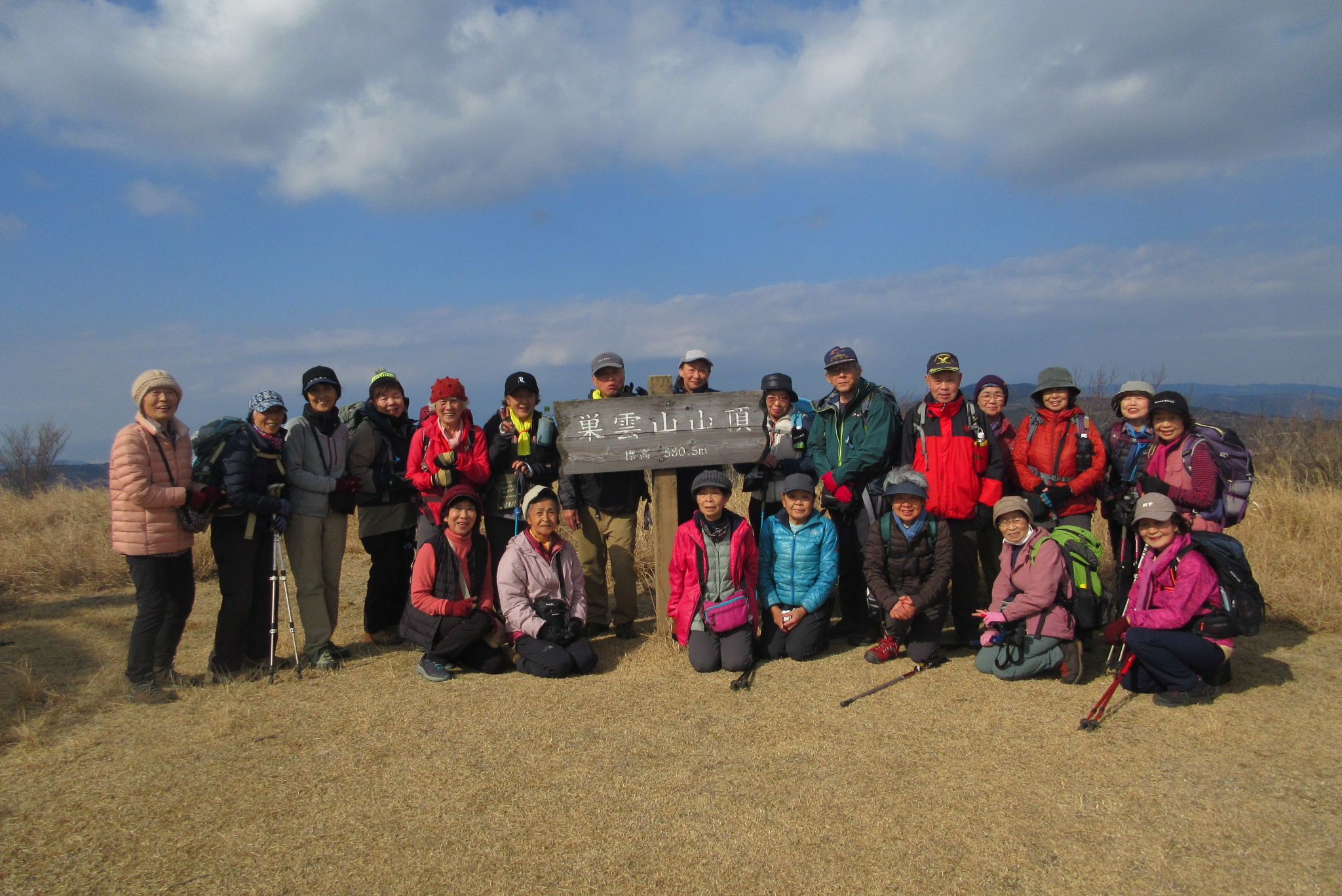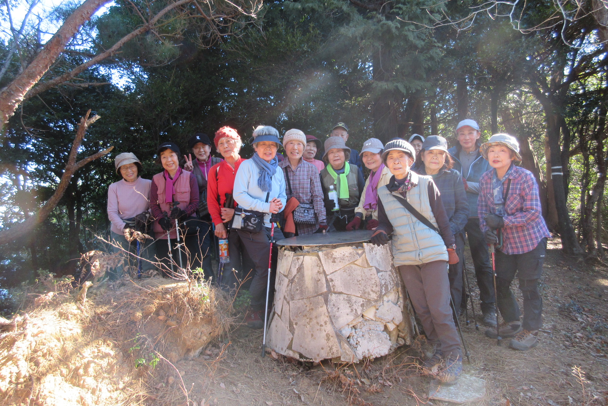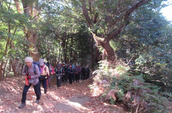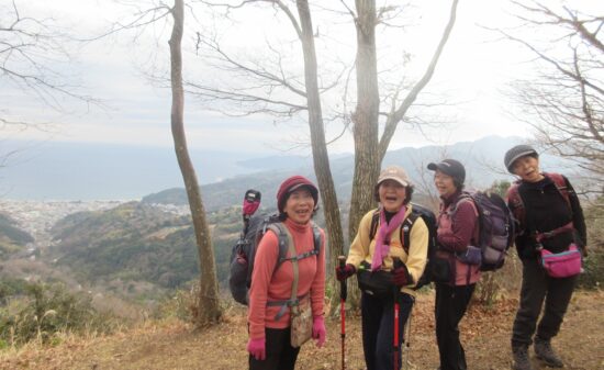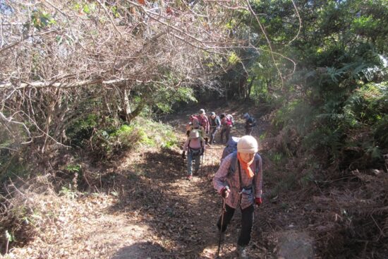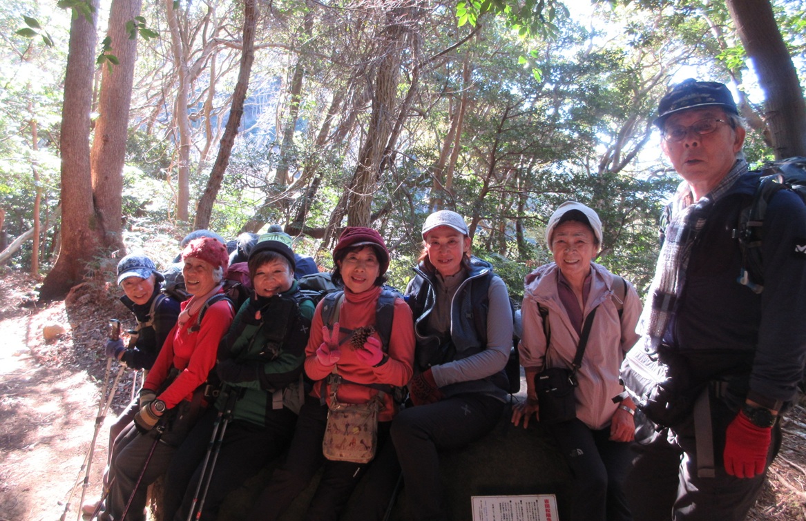 コース:宇佐美駅 9:30集合 9:35歩行開始 → 大丸山登山口 10:40 → 大丸山広場 昼食11:25-11:55 → 大丸山 12:05 → 巣雲山 12:50 → 登山口 14:20 → 民宿 ふかべ 15:35