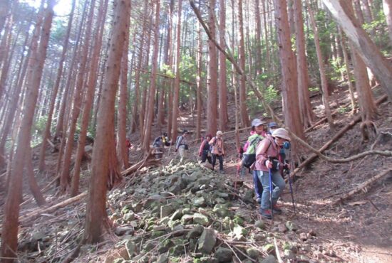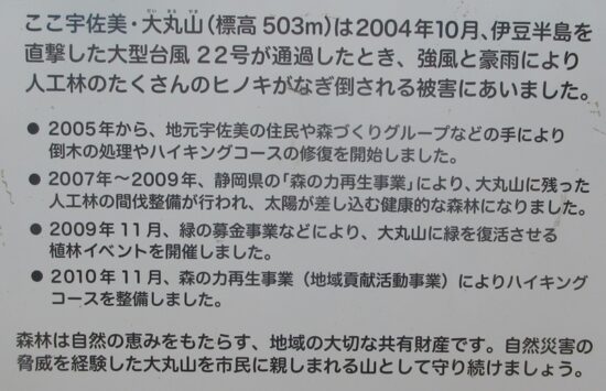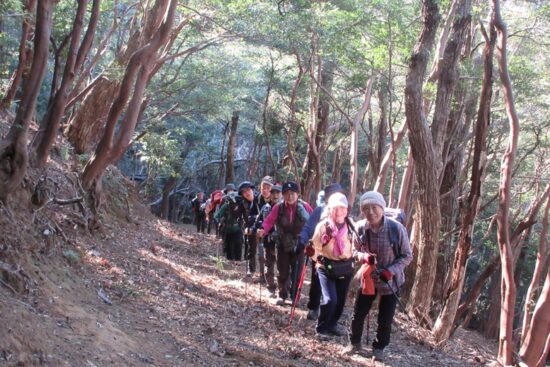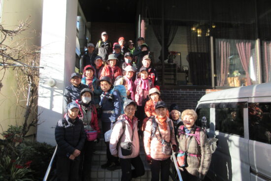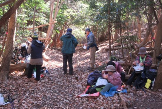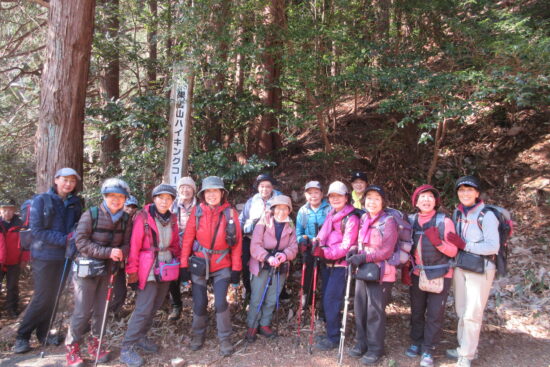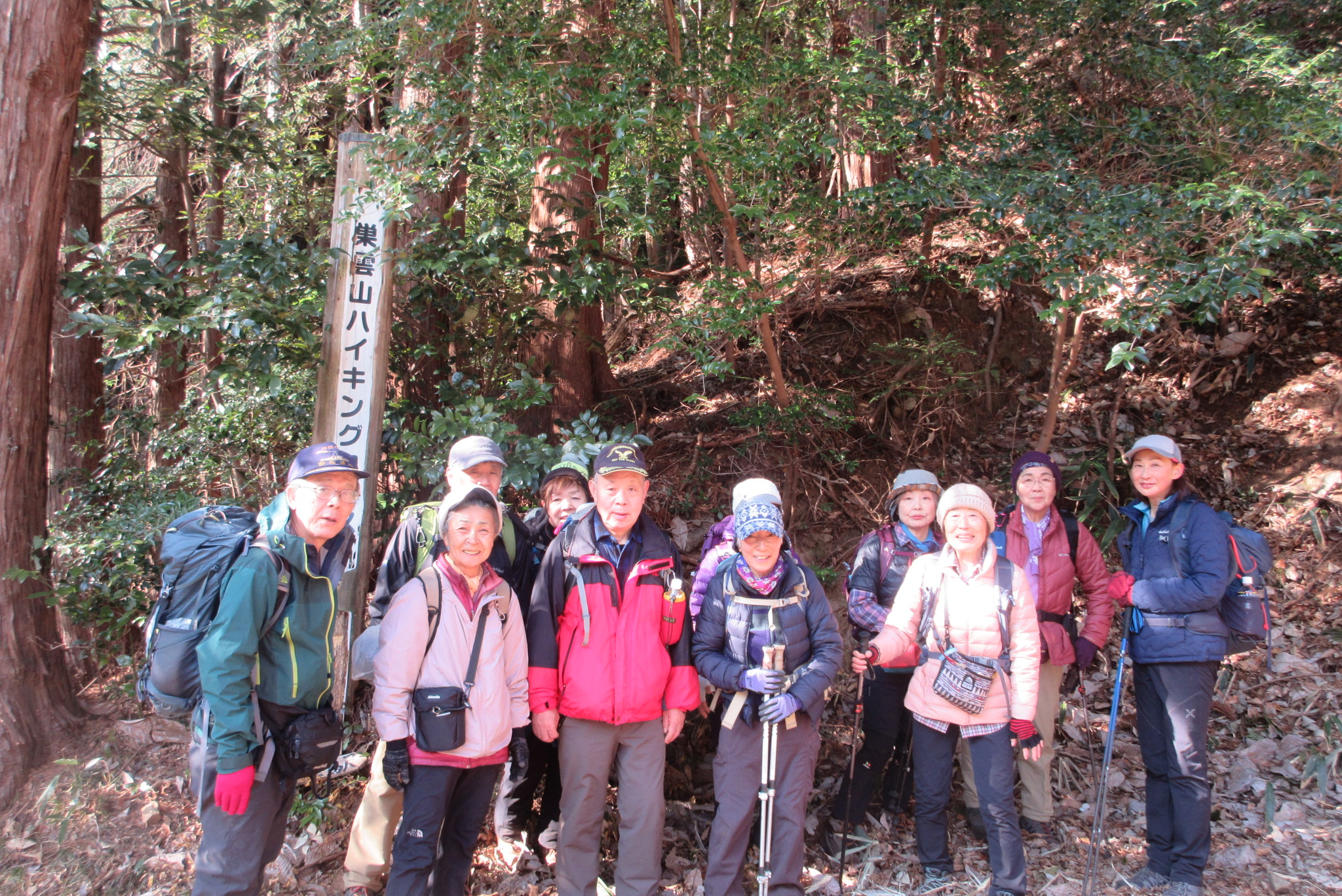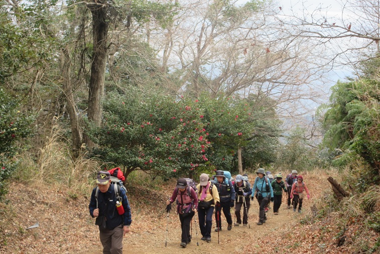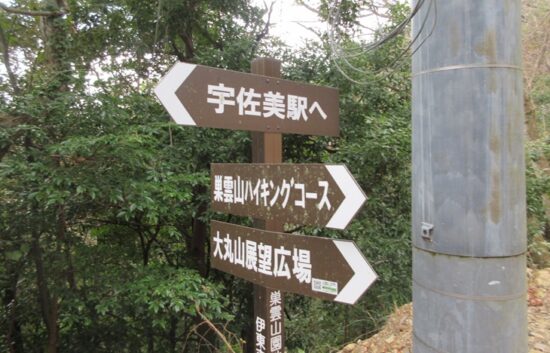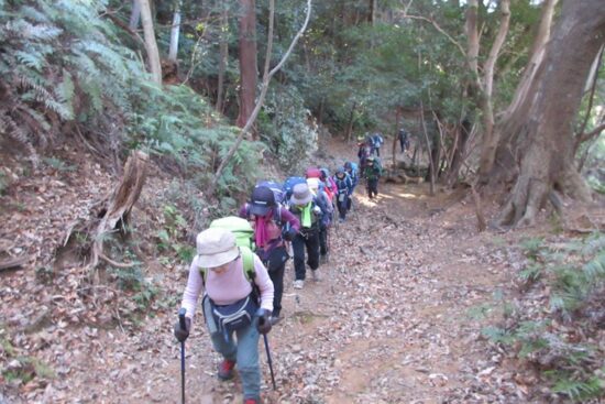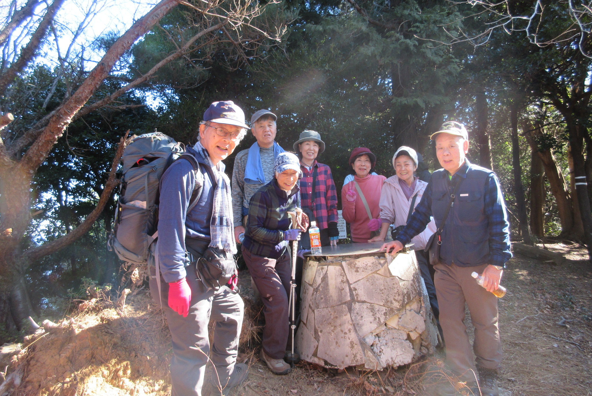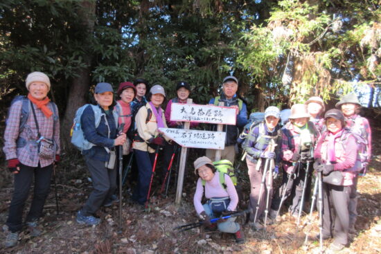 コース:宇佐美駅 9:30集合 9:35歩行開始 → 大丸山登山口 10:40 → 大丸山広場 昼食11:25-11:55 → 大丸山 12:05 → 巣雲山 12:50 → 登山口 14:20 → 民宿 ふかべ 15:35