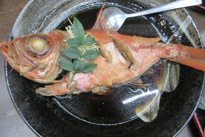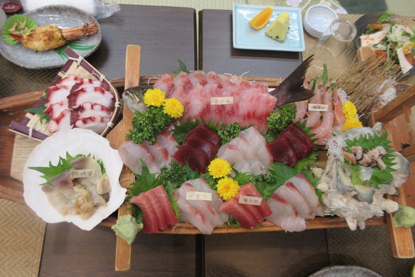 食べきれないほどのたくさんの刺身の船盛 そしてキンメダイの煮付け と とても豪華な料理にうれしくなりました