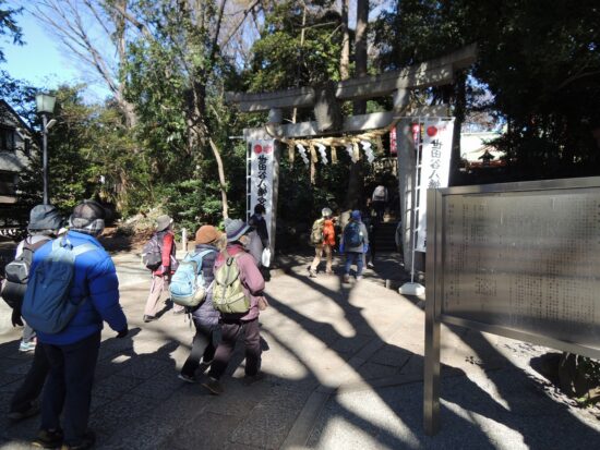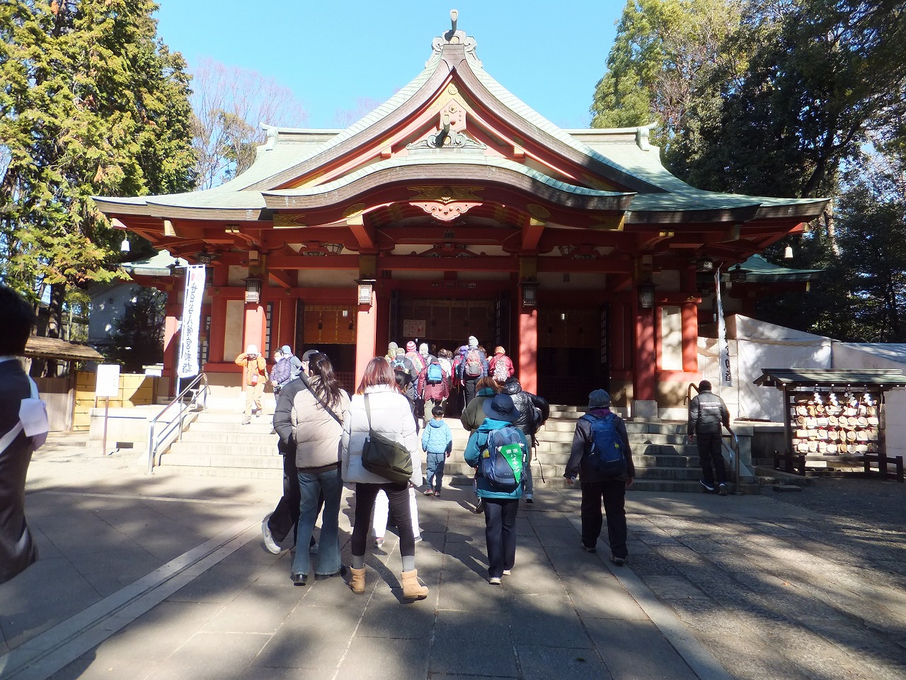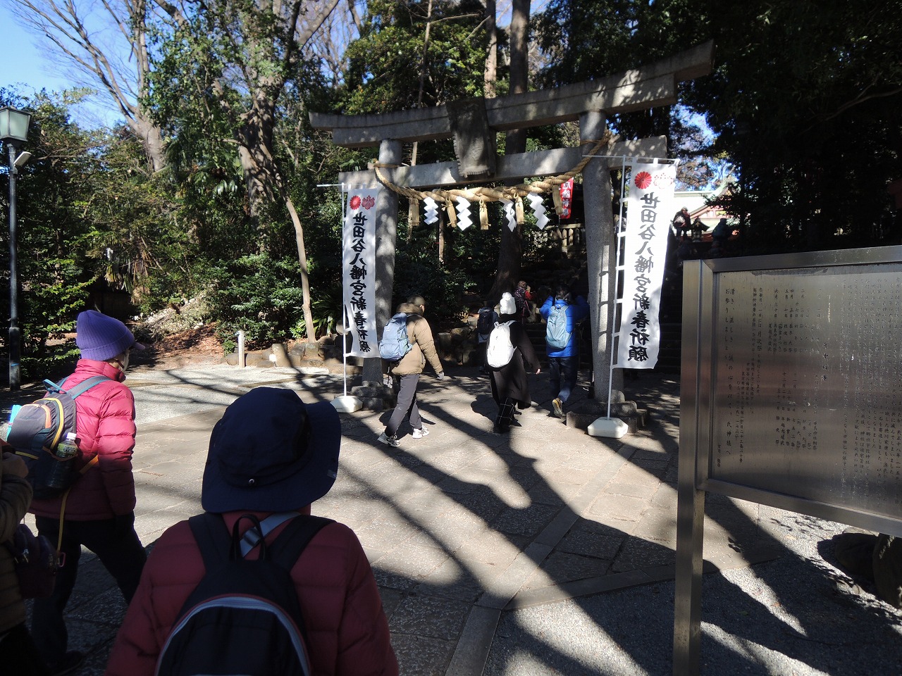 世田谷八幡宮に到着(世田谷八幡宮の由来は、平安時代初期、源義家が戦の勝利を祝し、弓矢などを納めて勧請したのが始まりといわれていま す。実際は天文15年(1546)に当時の世田谷城主、吉良頼康が社殿を建立したのが始まりと考えられています。)
