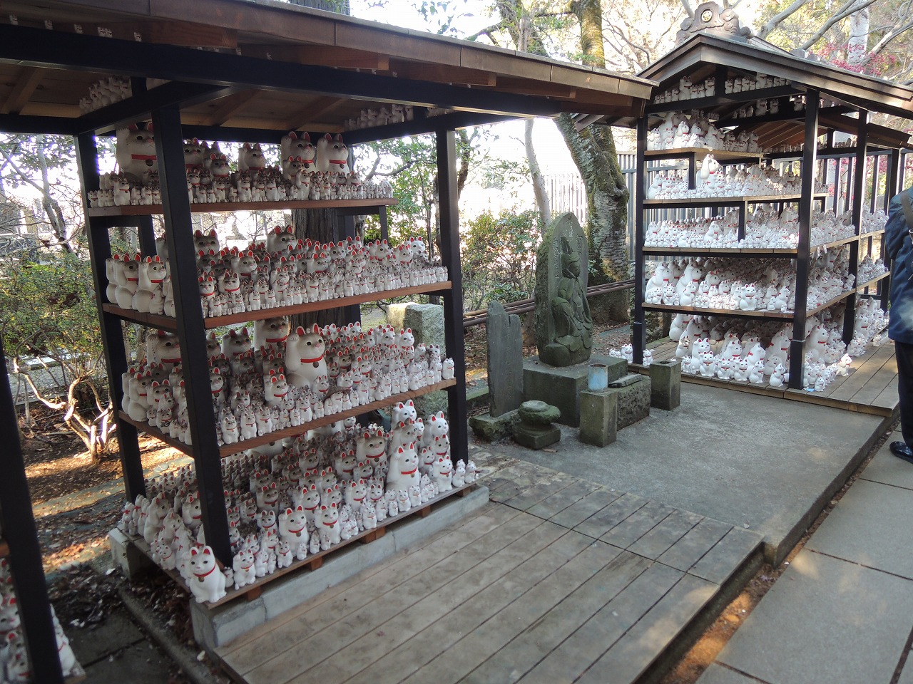 ねこで有名です(井伊家の菩提寺となり、発展したことから、寺に福を招いた白猫は崇められ、その姿を模した置物(招き猫)が作られるようになったとおうことです。)