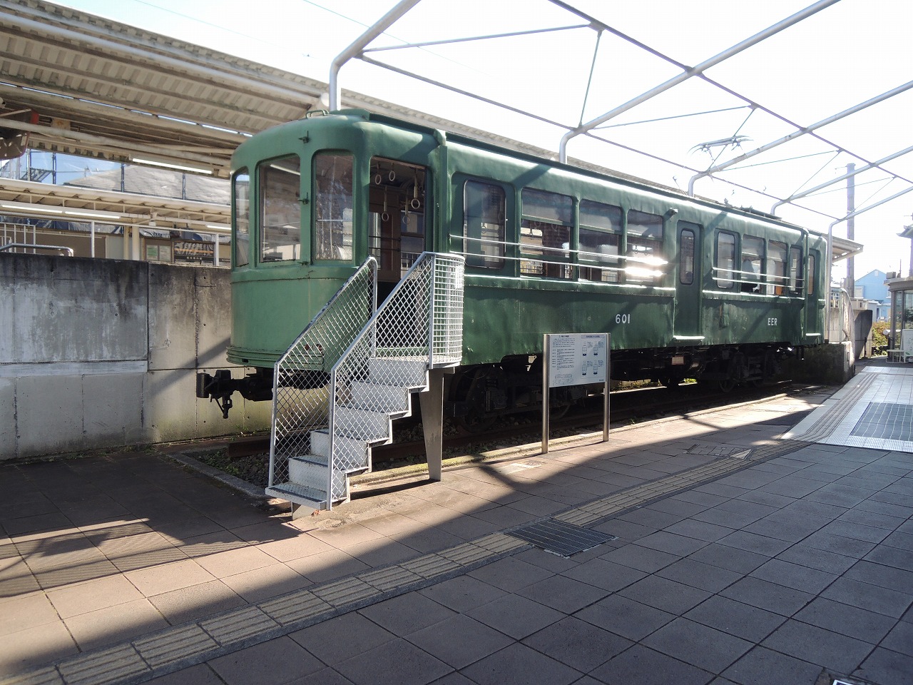 世田谷線宮の坂駅横に展示されている江ノ電601号