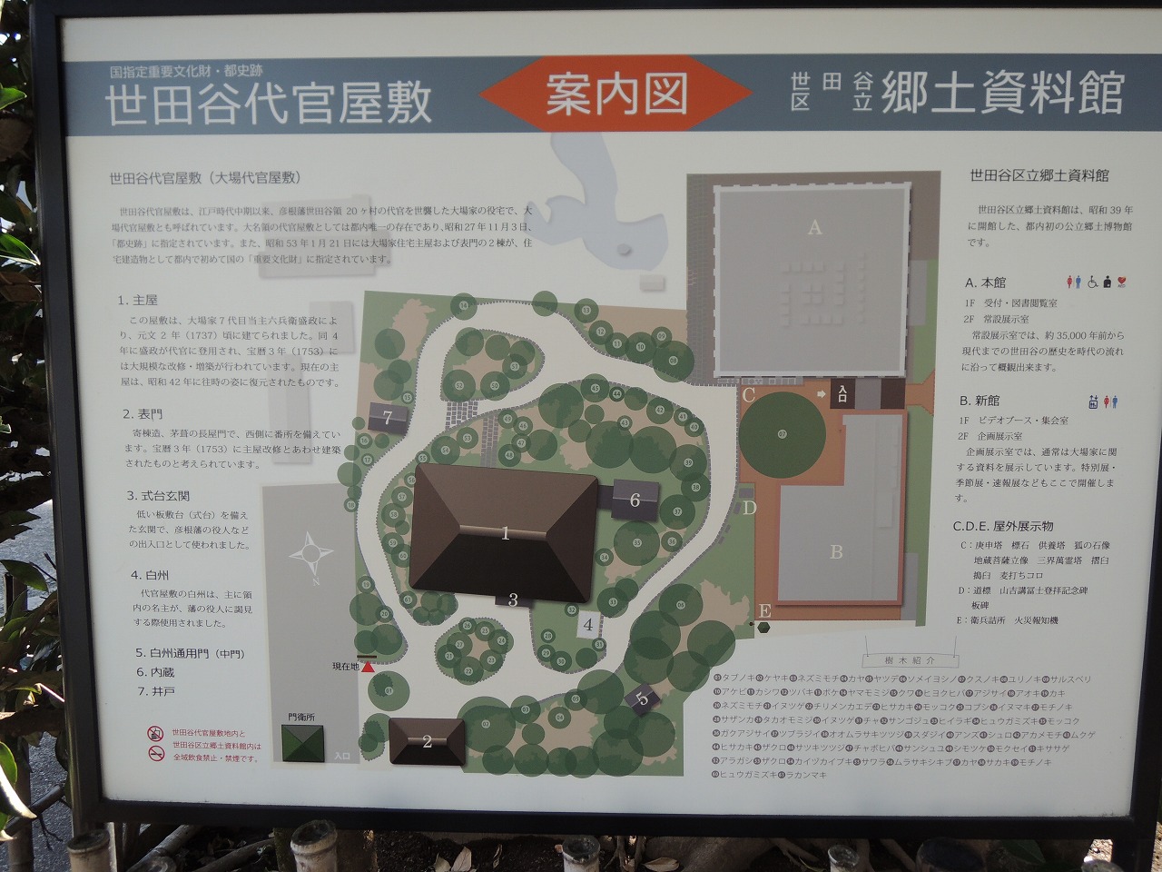 世田谷代官屋敷に到着(世田谷代官屋敷は、江戸時代中期以来、彦根藩世田谷領20ヵ村の代官を世襲した大場家の居宅兼役宅で、大場代官屋敷とも呼ばれています。大名領の代官屋敷としては都内唯一の存在であり、その由緒により、昭和27年(1952)11月3日、「都史跡」に指定されました。)