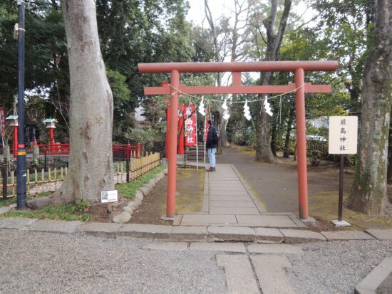 厳島神社 (世田谷八幡宮の大きな鳥居をくぐると、すぐ右手に厳島神社があります。市杵島比売命(いちきしまひめのみこと)をお祀りしており、知恵、財福、子孫繁栄、海上安全のご利益で知られています。)
