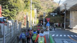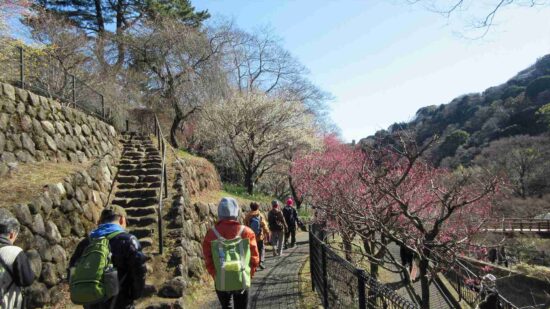 ※糸川ご沿って急坂(標高差100m)を歩き梅園に向かう。