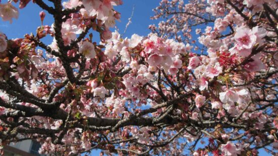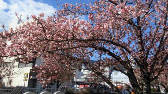 今日は風がなく暖かった。今年は寒さが強かったことで、あたみ桜は七分咲きで、梅も咲き初めのようで10日ほど早い咲きでした。直江忠彦