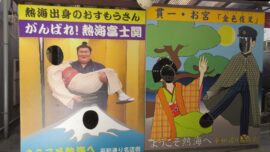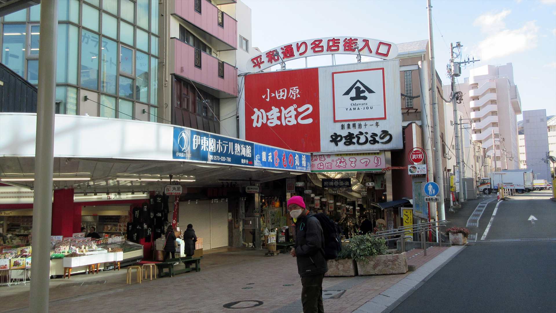 平和通り商店街を抜け「お宮の松」に向かう。 熱海出身力士と貫一・お宮