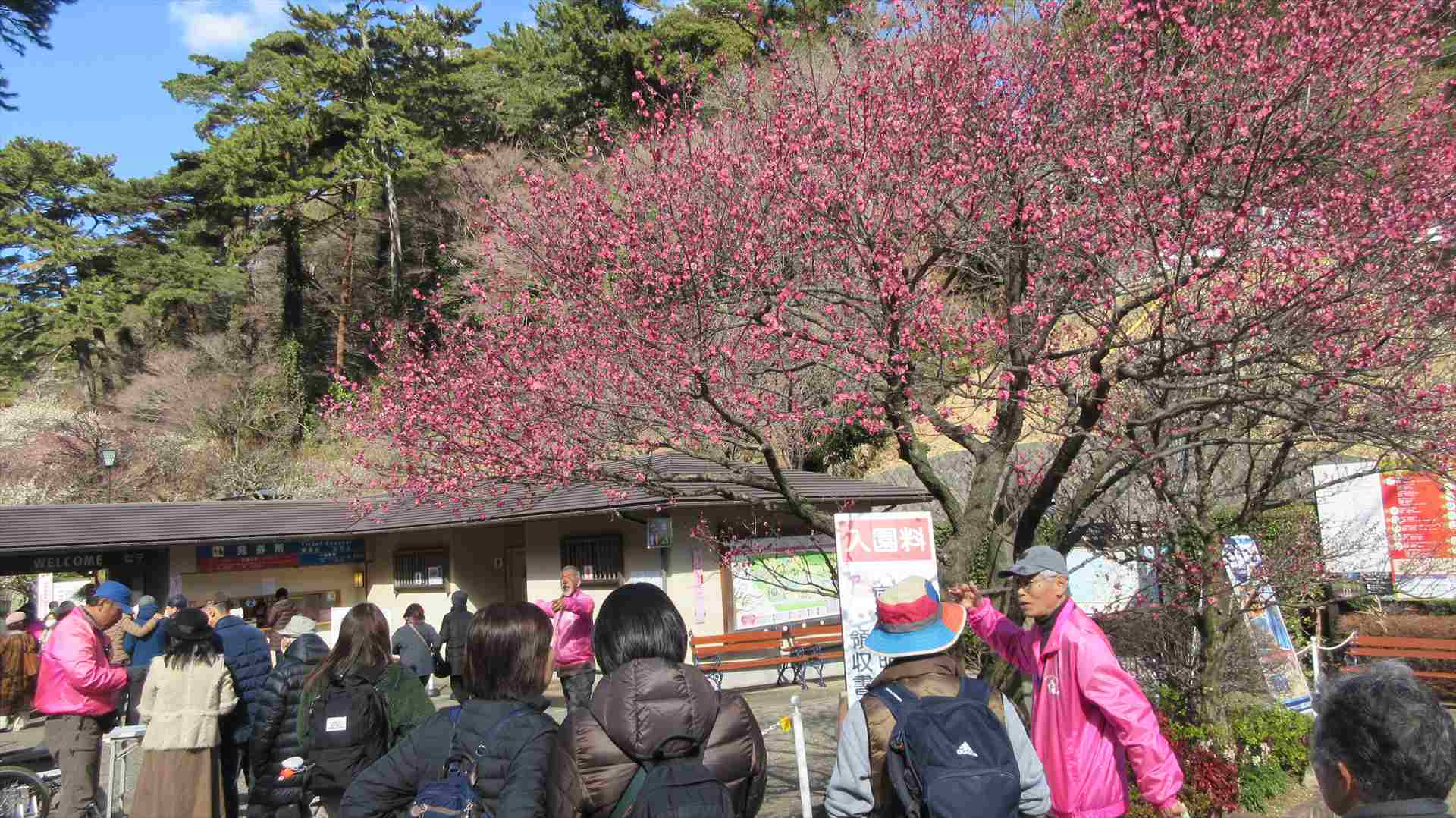梅園には中国の春節休みで訪れた客が大勢いた。