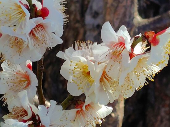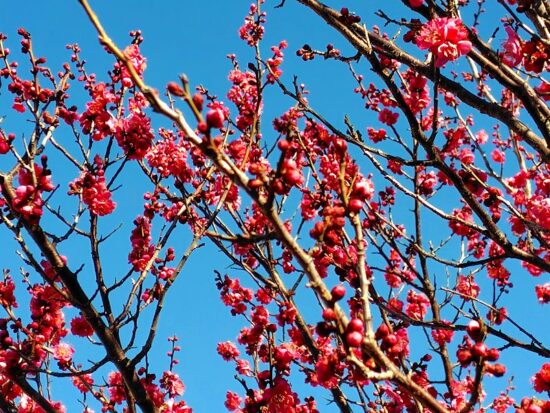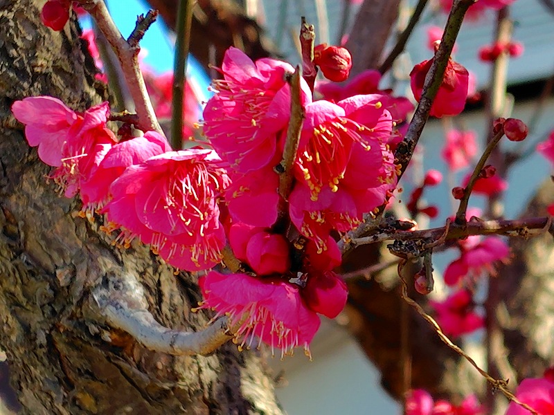晴天の下、きれいな満開の白梅紅梅を愛でながらの散歩でした。
