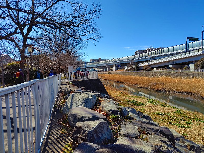 新鶴嶺橋北側の小出川左岸に500mほどの紅梅白梅の並木が続く。