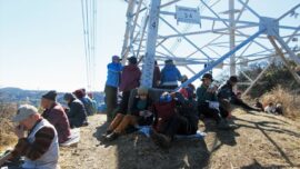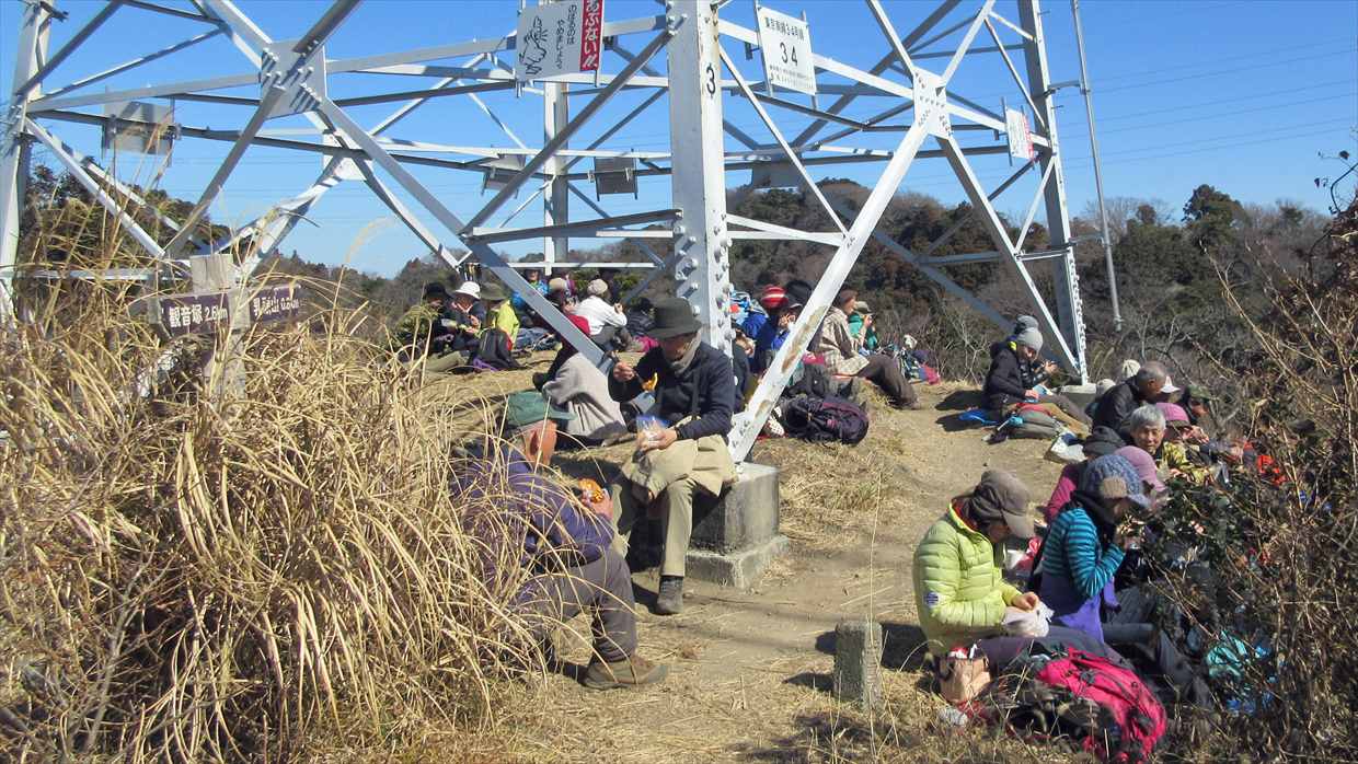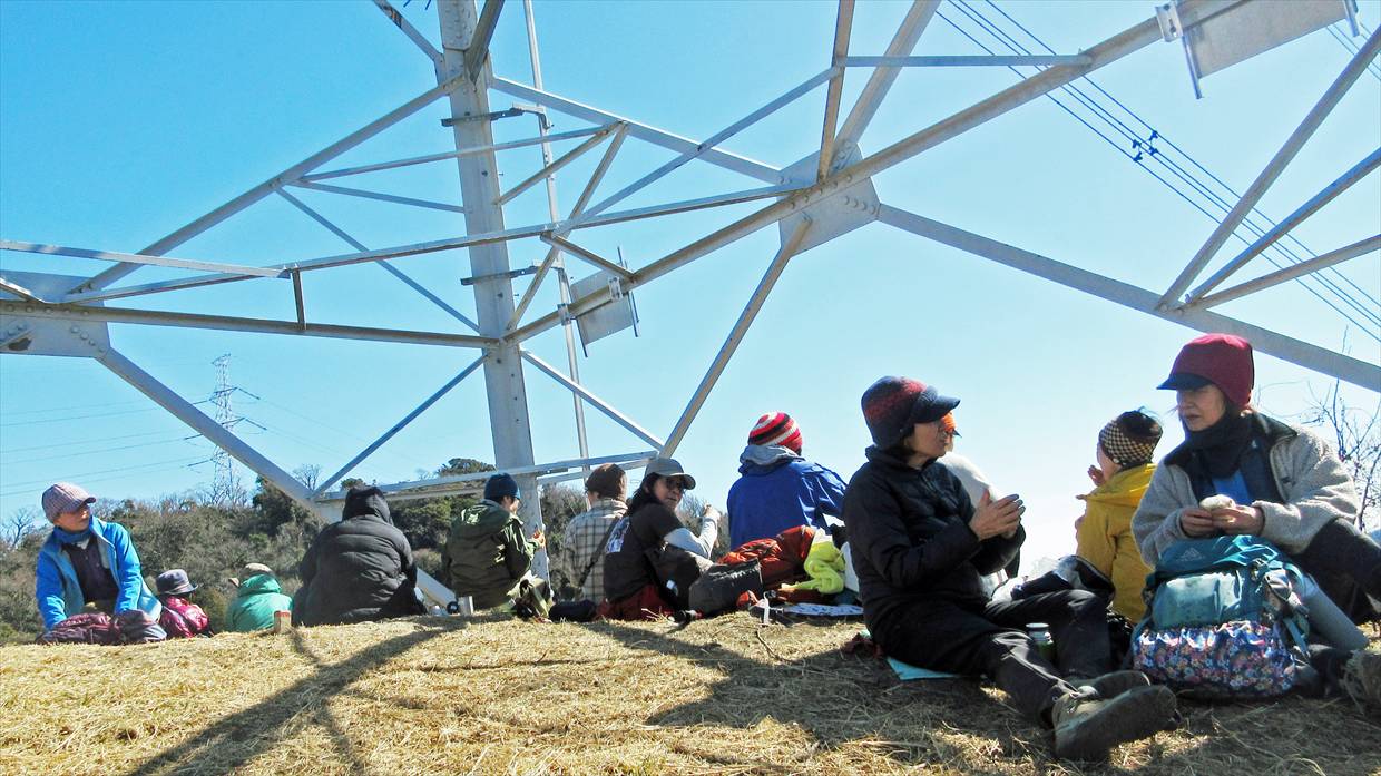 多数で食事する場所がなく12時すぎに、 鉄塔のある広場でランチタイムにする。