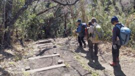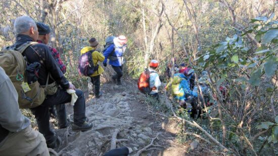 南尾根は森戸川に注ぐ分岐が幾つもあり、迷い道が多く班が離れないように促す。