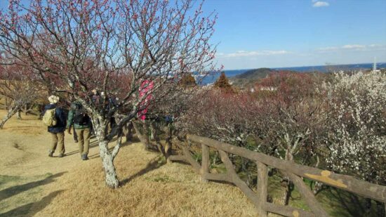 田浦梅林は、寒波の襲来で開花が遅れ4分咲、参加者の皆様とほのかに漂う梅の香りを楽しみました。