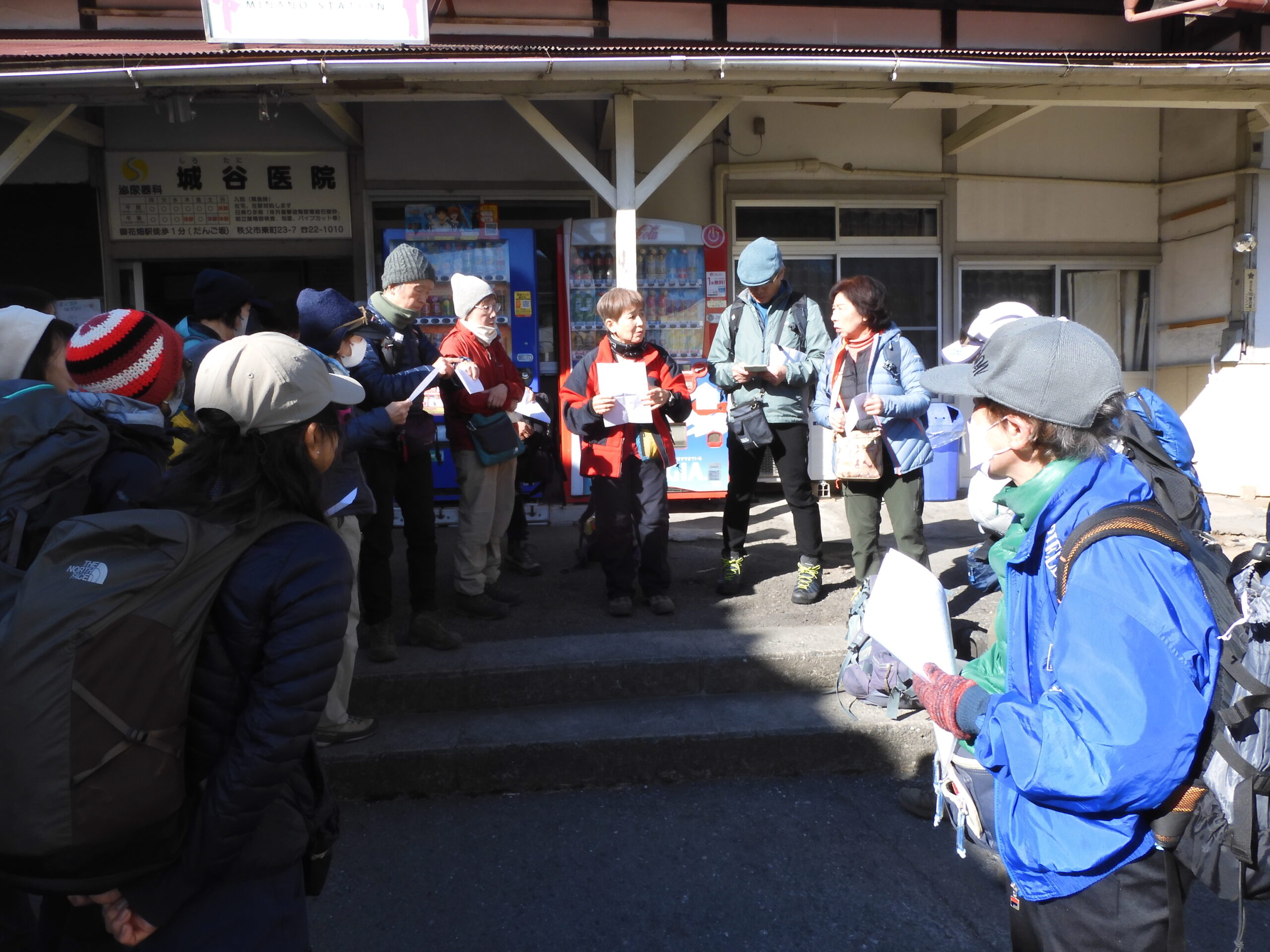 秩父鉄道皆野駅にてでリーダー挨拶、 西門平バス停迄タクシー利用