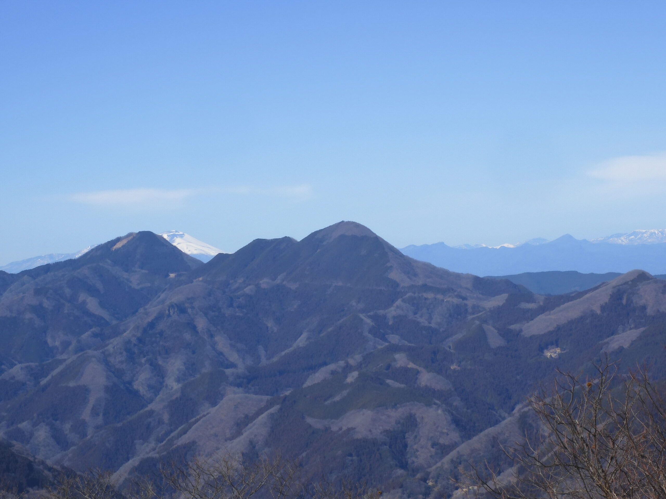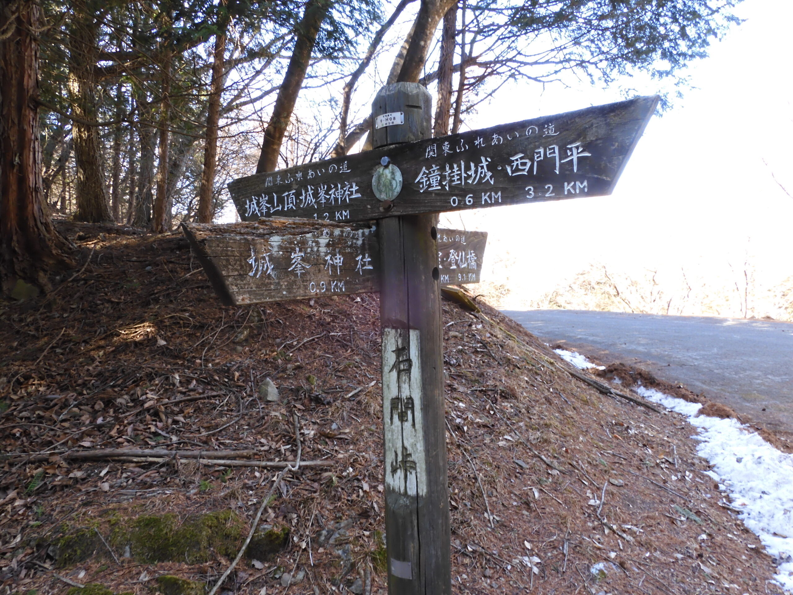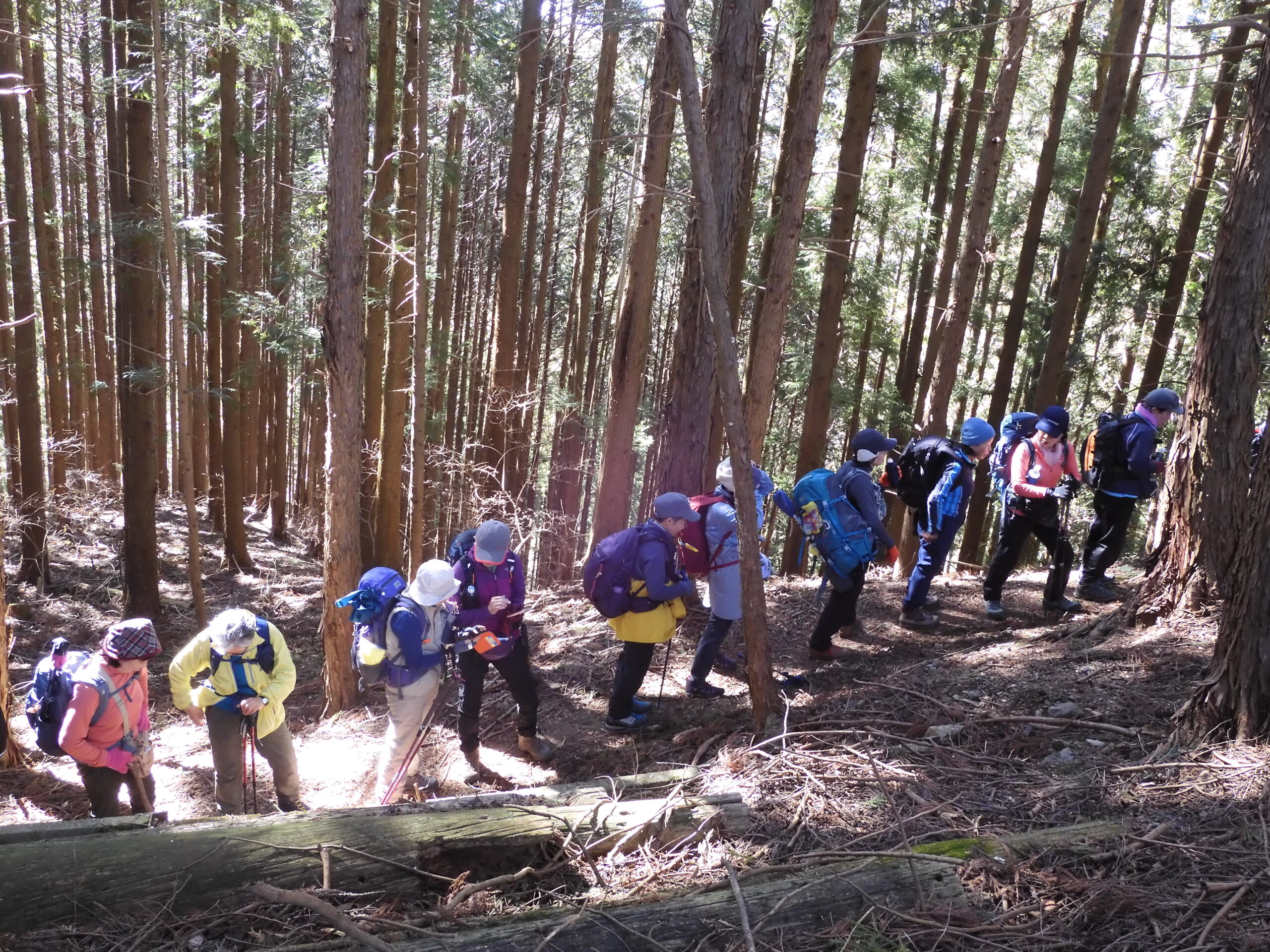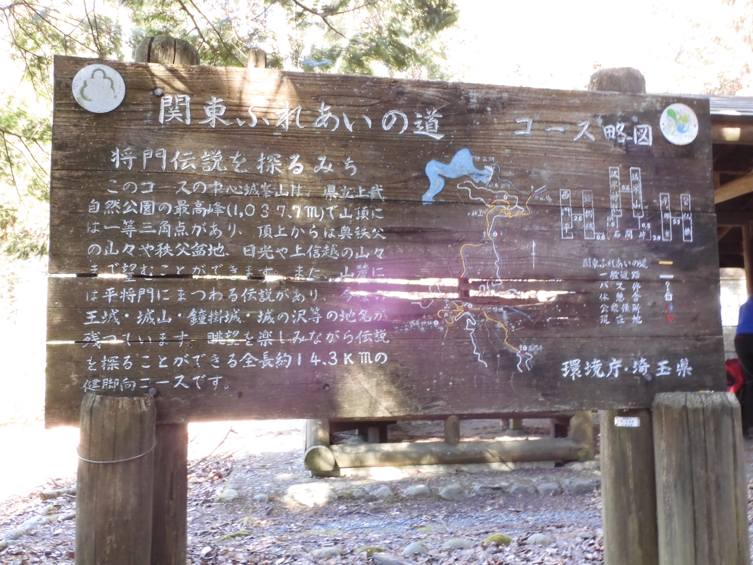 コメント:バス停から林道を2回横切り衣類調整、水分補給を摂りながら鐘掛城迄ひたすら登りが続く。ここから2回のアップダウンを繰り返し城峯山山頂に着くと真正面に立派な一等三角点の標石が目に飛び込んで来る。ここでゆっくり山ご飯を楽しみ、電波塔を兼ねた立派な展望台からは晴天も手伝って両神山、浅間山、奥秩父等360度の眺望を楽しめました。