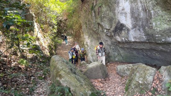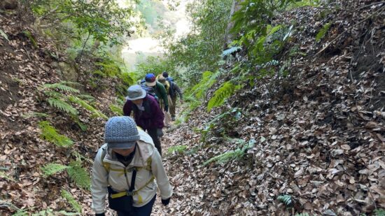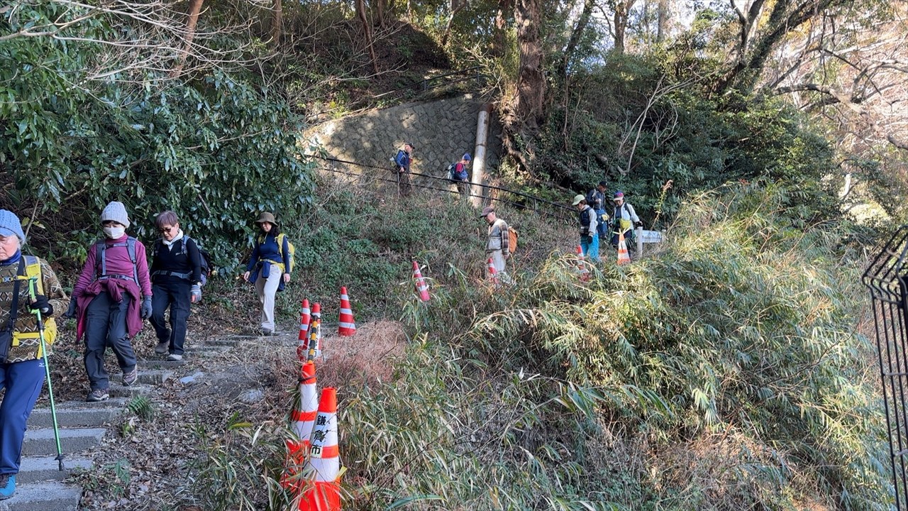 西鎌倉駅から住宅街の脇に広がる緑地帯のハイキングコースを中心に歩きました。急坂を登った後の「大仏切通し」から「佐助稲荷神社」方面に向かう途中の細い道が雨水の水路になっているようで、大きな段差が生じていました。簡単に登れそうにないので、標識を見てう回路を行くことにしましたが、思った以上におおきな回り道になっていて、昼食時間が遅くなってしまいました。