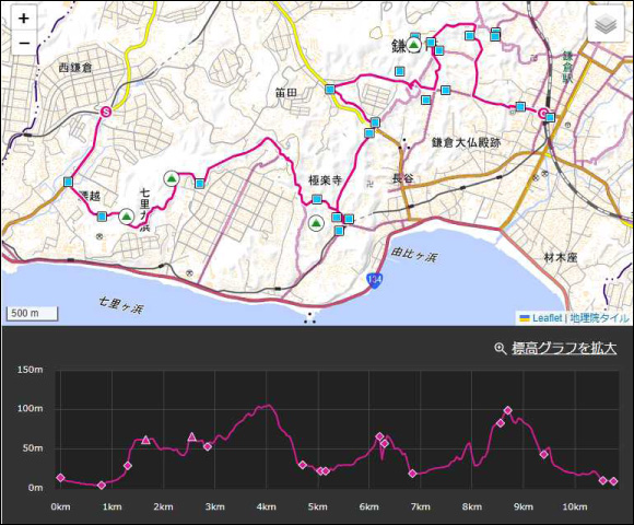 ▼コース : 西鎌倉駅 9:10 – 9:30広町緑地室ヶ谷入口 – 9:40 峯山 – 10:05 うさぎ山 – 10:25 鎌倉広町緑地鎌倉山入口 – 10:30 鎌倉山2丁目 – 10:45 鎌倉山神社 – 11:05 稲村ヶ崎小学校 – 11:10 極楽寺駅 – 11:40 大仏切通し – 12:33 佐助稲荷神社分岐(昼食) – 13:20 銭洗弁天分岐 – 13:25 銭洗弁財宇賀福神社 – 13:55鎌倉駅