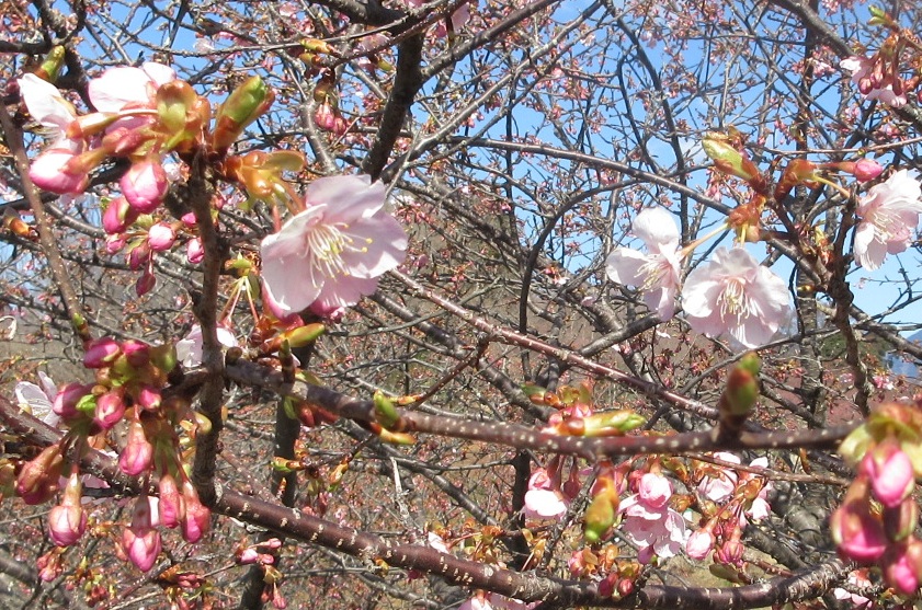 いつもの年なら満開の河津桜は一部咲きくらいでしょうか