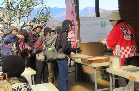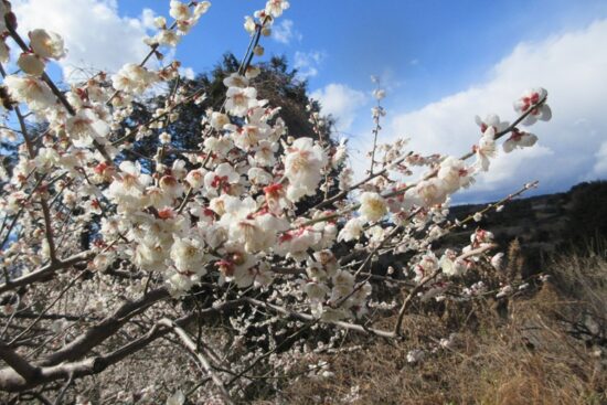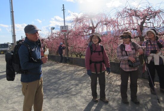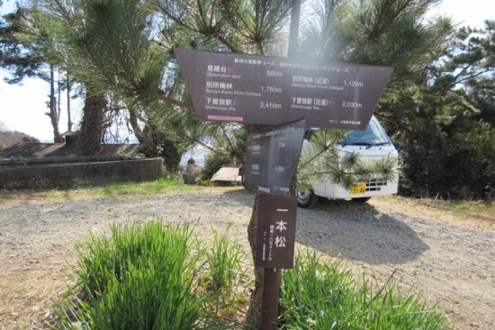 コース:上大井駅 10:15集合 歩行開始 10:30 → おおいゆめの里(昼食 買い物) 11:25-12:10 → 郷土資料館 12:20 → 浅間山 13:00 → 不動山 13:40 → 六本松跡 14:05 → 一本松跡 14:10 → 小田原牧場アイス工房 解散 14:45 → 梅まつり → 下曽我駅
